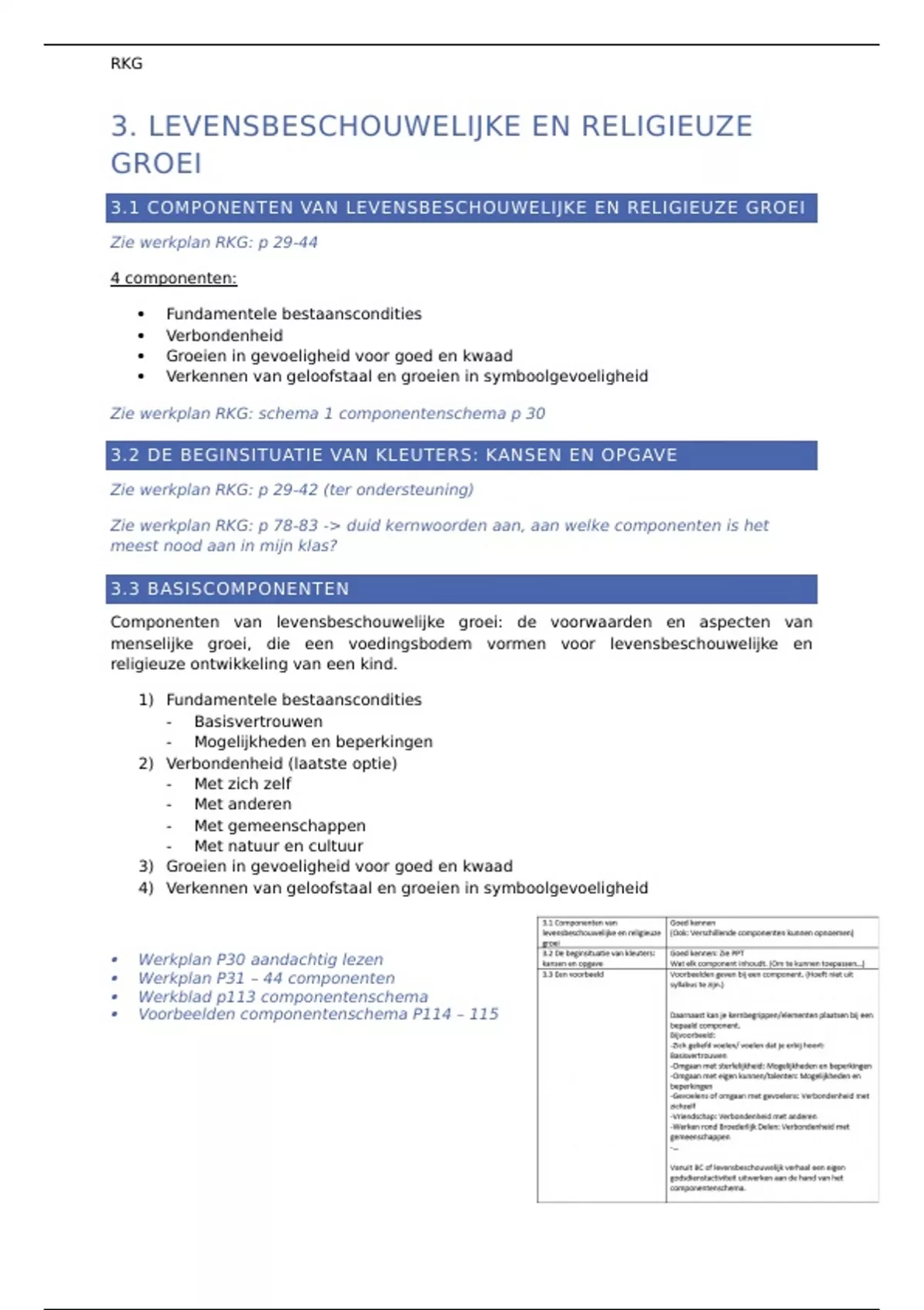 Zie werkplan RKG: p 78-83 -> duid kernwoorden aan, aan welke componenten is het