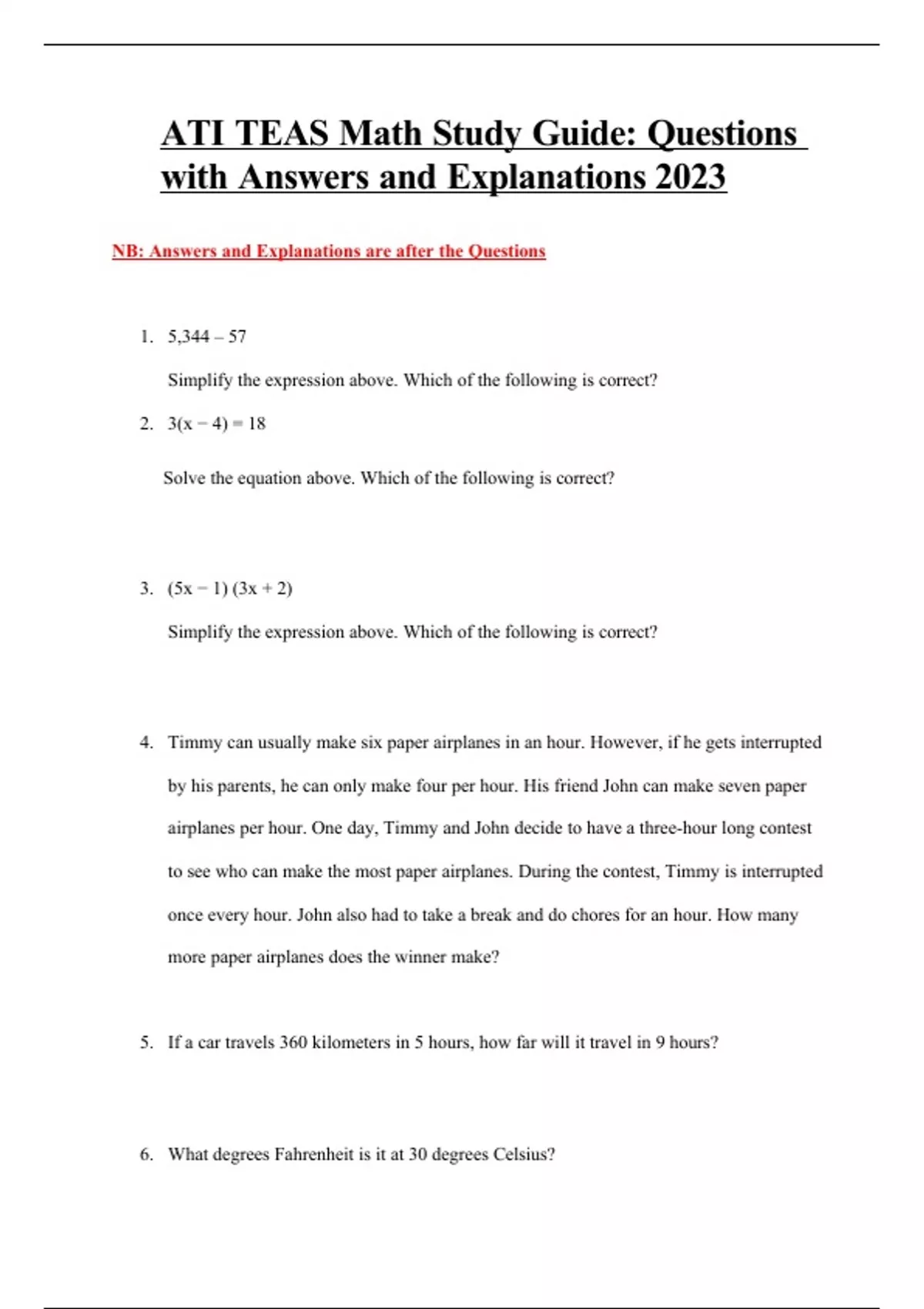 ATI TEAS Math Study Guide Questions with Answers and Explanations 2023