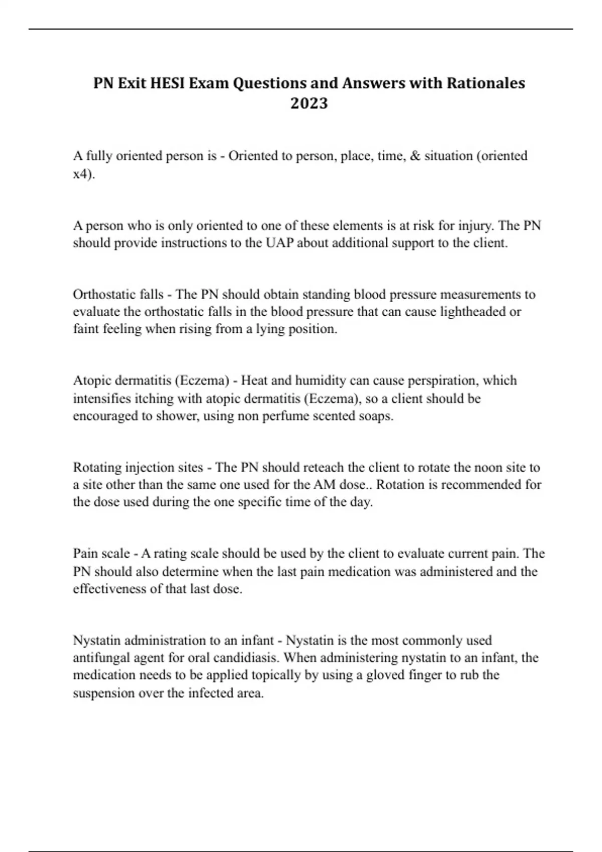 PN Exit HESI Exam Questions and Answers with Rationales 2023