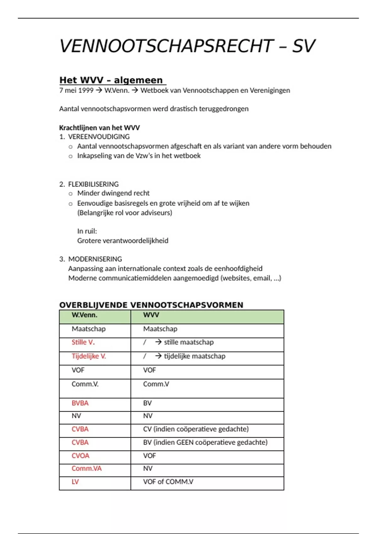 Samenvatting VENNOOTSCHAPSRECHT - 3e jaar RECHTSPRAKTIJK