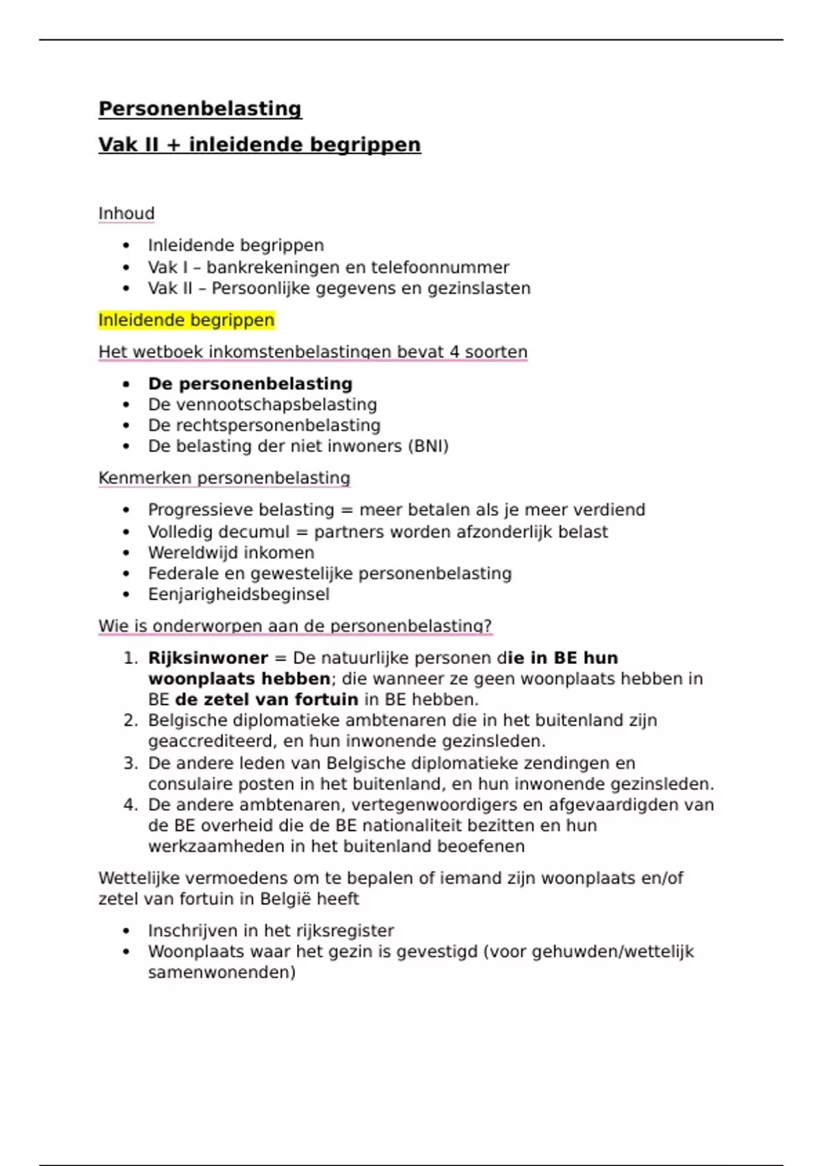 1. Rijksinwoner = De natuurlijke personen die in BE hun