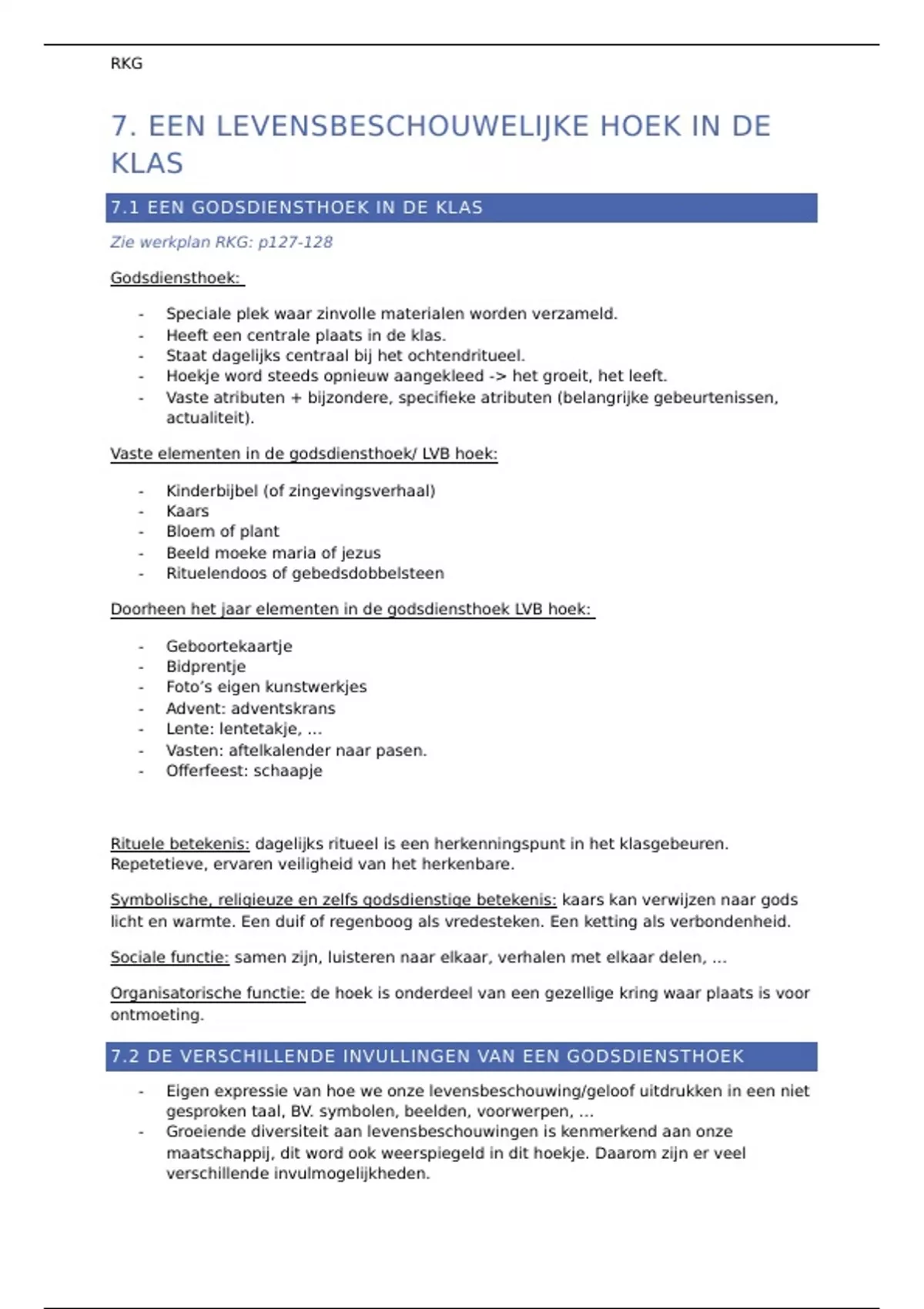 Samenvatting RKG H7 een levensbeschouwelijke hoek in de klas