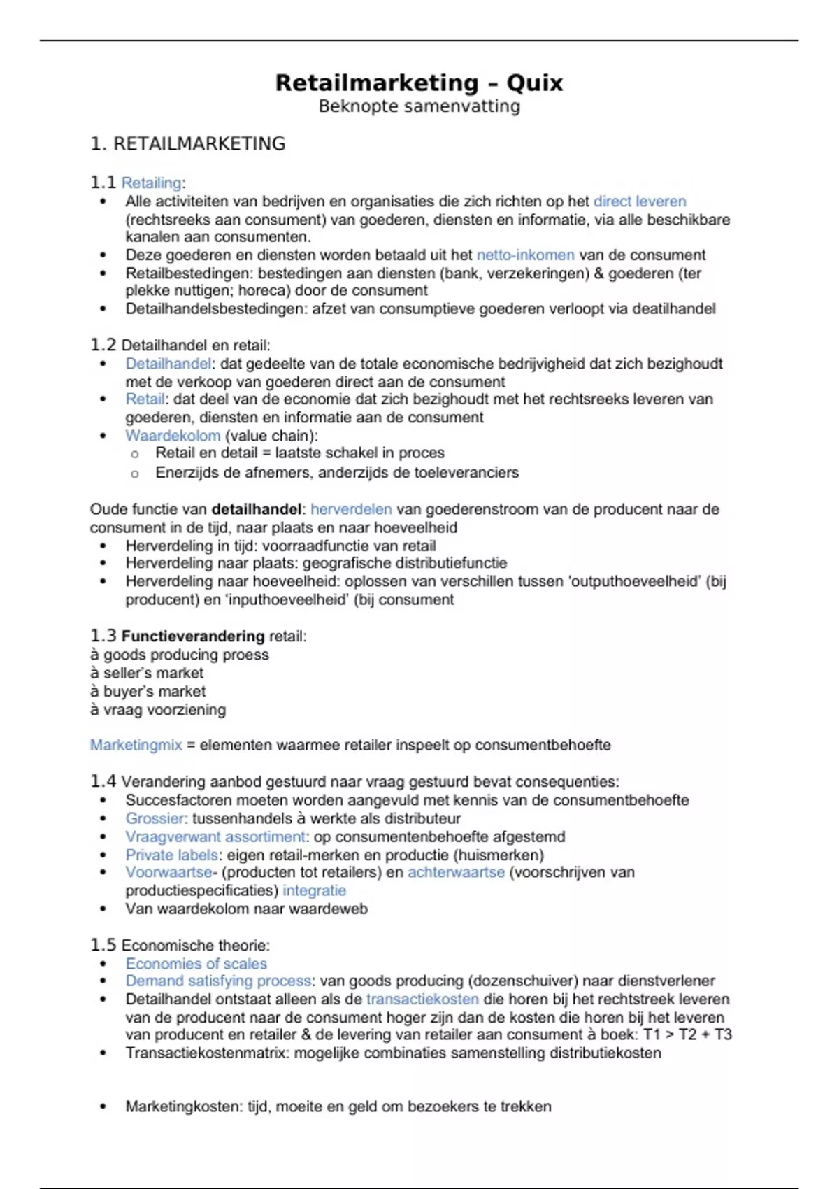 Retail: dat deel van de economie dat zich bezighoudt met het rechtsreeks leveren van