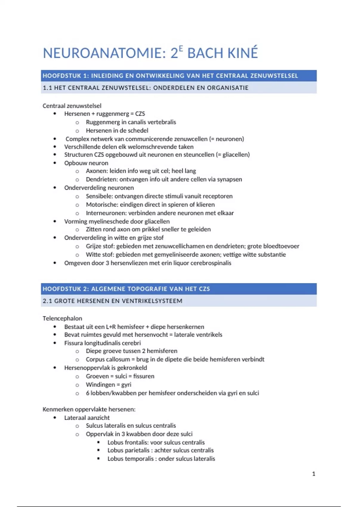 HOOFDSTUK 1: INLEIDING EN ONTWIKKELING VAN HET CENTRAAL ZENUWSTELSEL