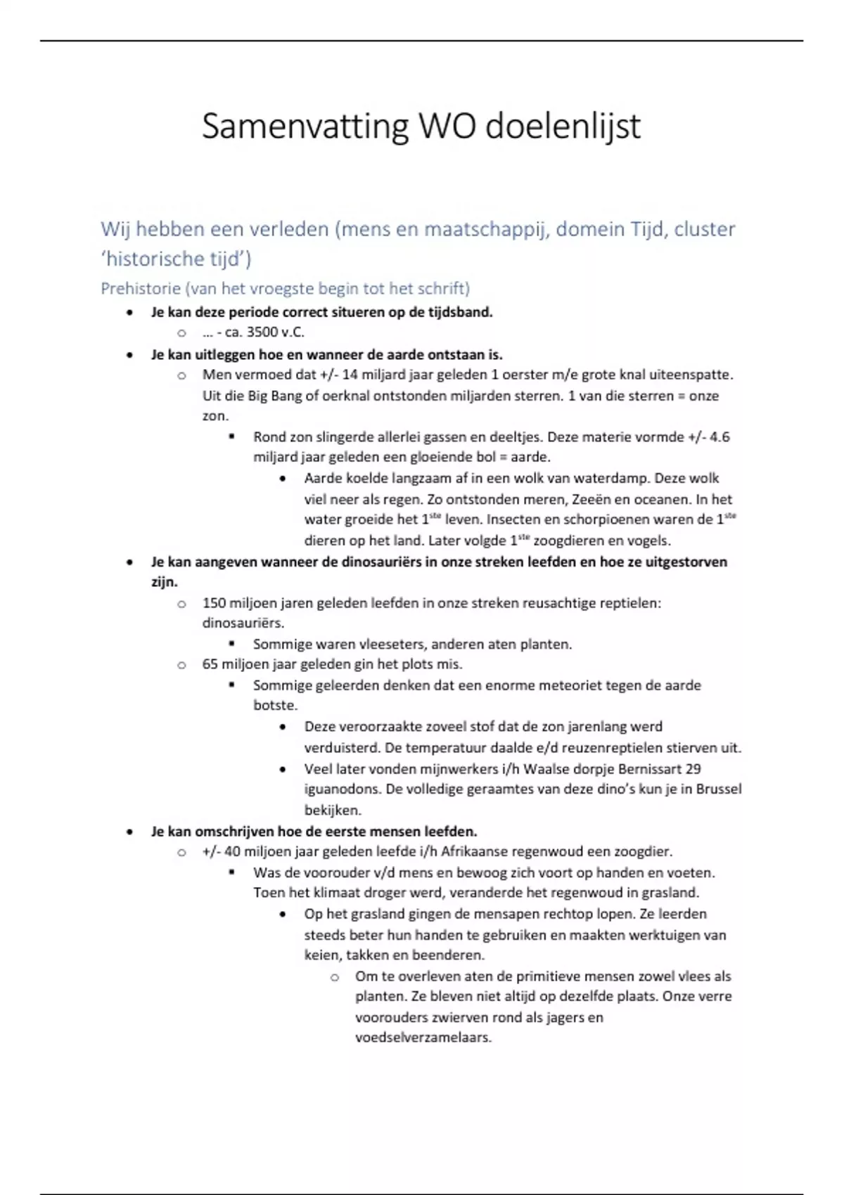 Samenvatting WO doelenlijst