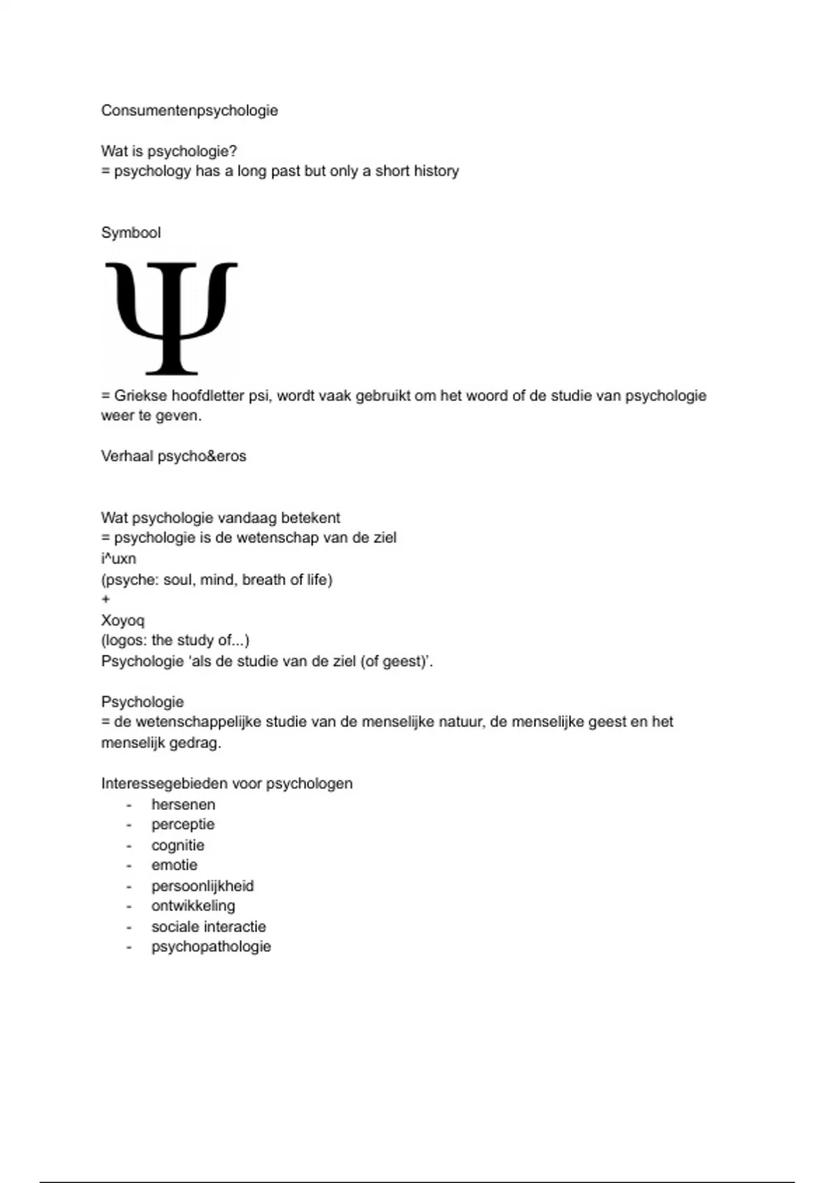 = Griekse hoofdletter psi, wordt vaak gebruikt om het woord of de studie van psychologie