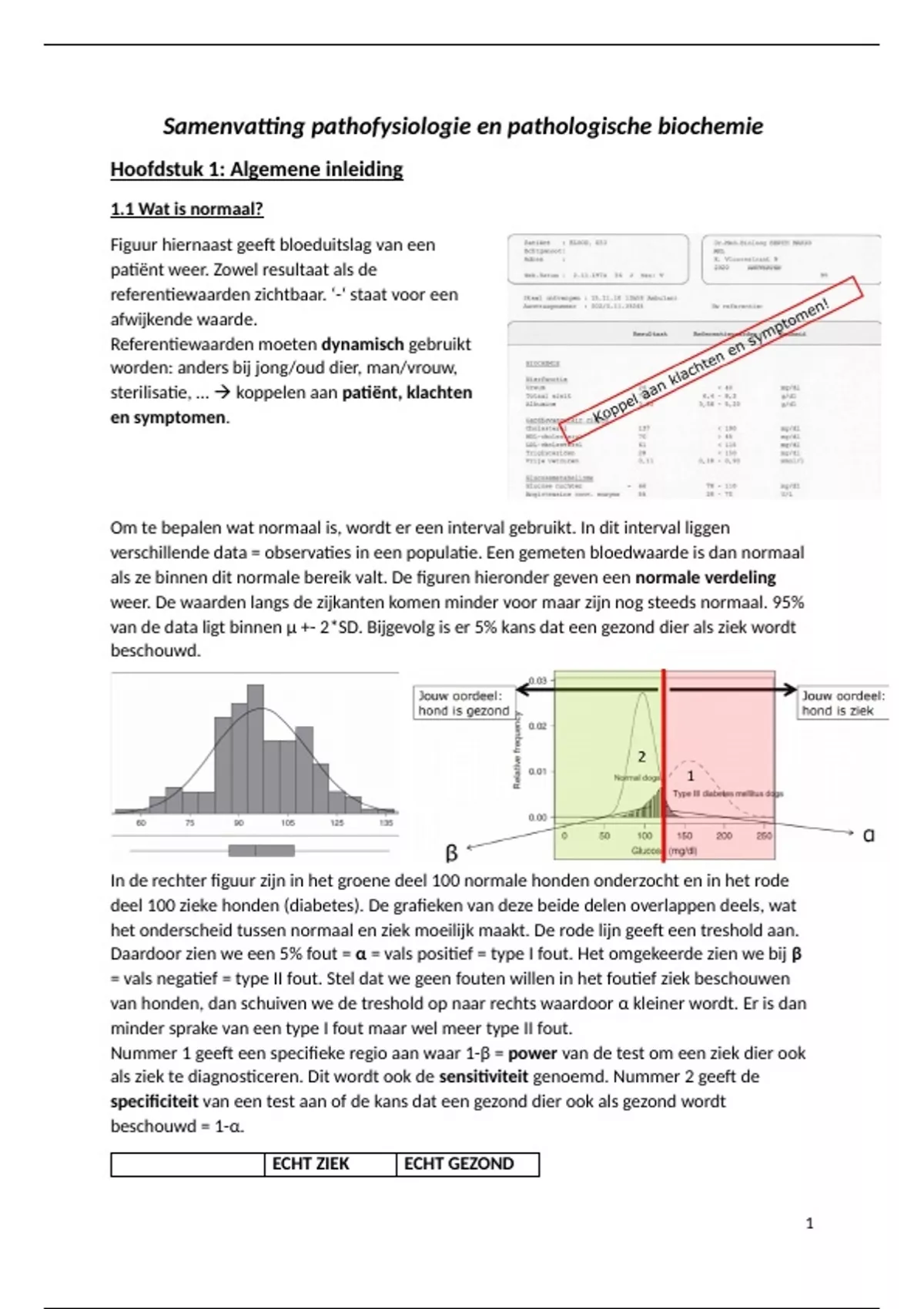 = vals negatief = type II fout. Stel dat we geen fouten willen in het foutief ziek beschouwen