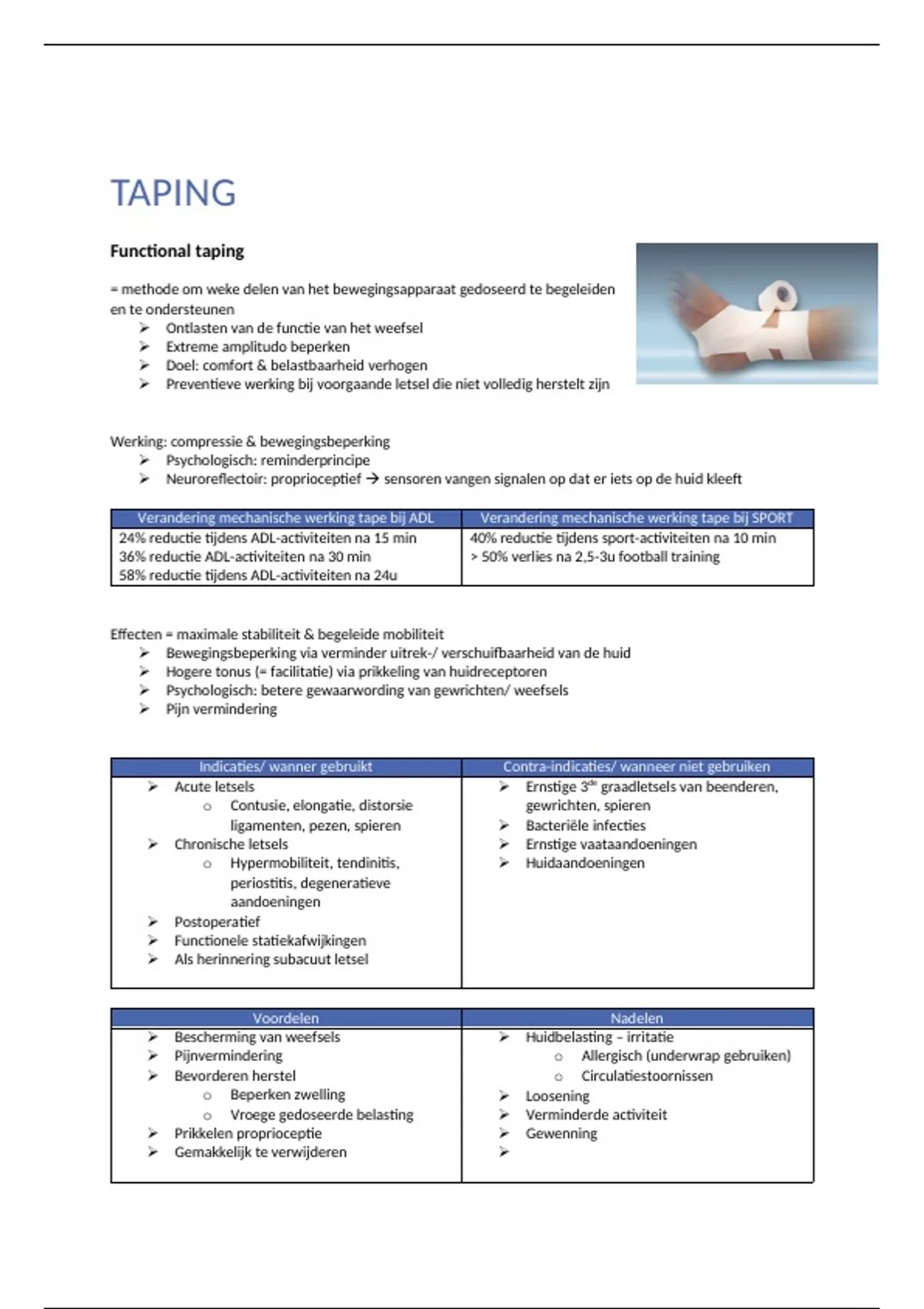  Fixatie: ondersteuning inertie botstructuren, bewegingsbeperking, versterking bandage