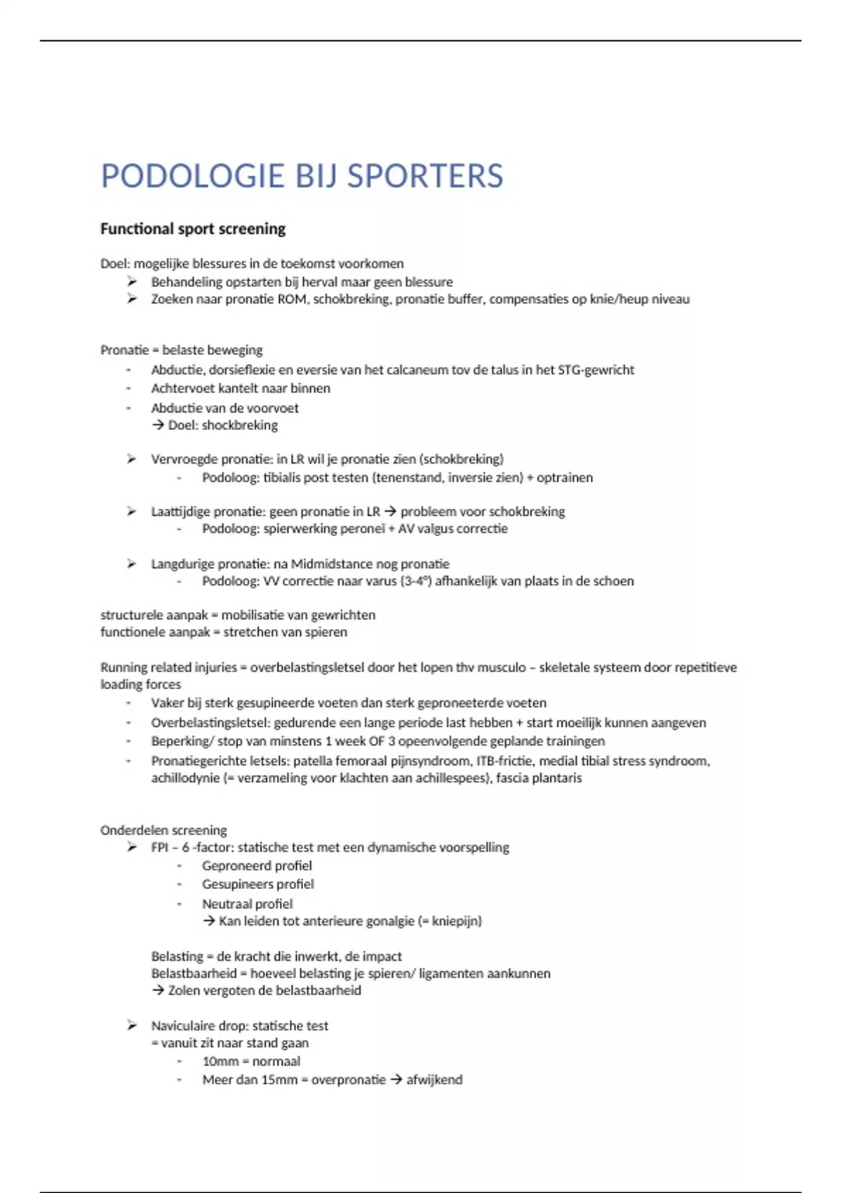 - Pronatiegerichte letsels: patella femoraal pijnsyndroom, ITB-frictie, medial tibial stress syndroom,