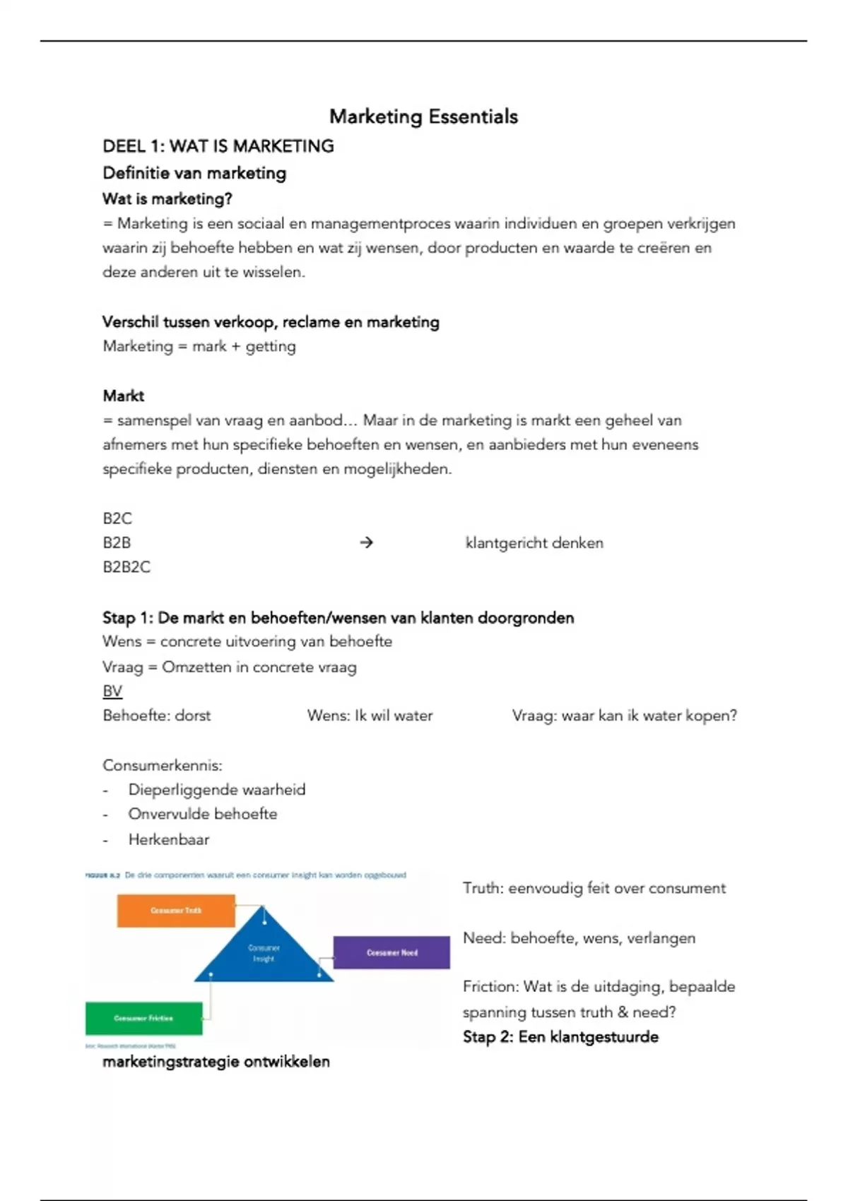 Samenvatting van het boek Marketing, de basisprincipes. Deze samenvatting is ook gemaakt aan de hand van slides uit het 1ste semester Marketing essentials uit Media en Entertainment business aan Vives Kortrijk.