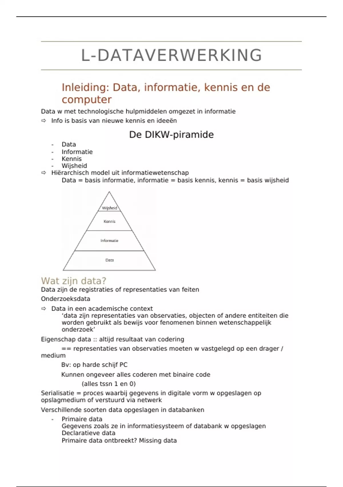 Data = basis informatie, informatie = basis kennis, kennis = basis wijsheid