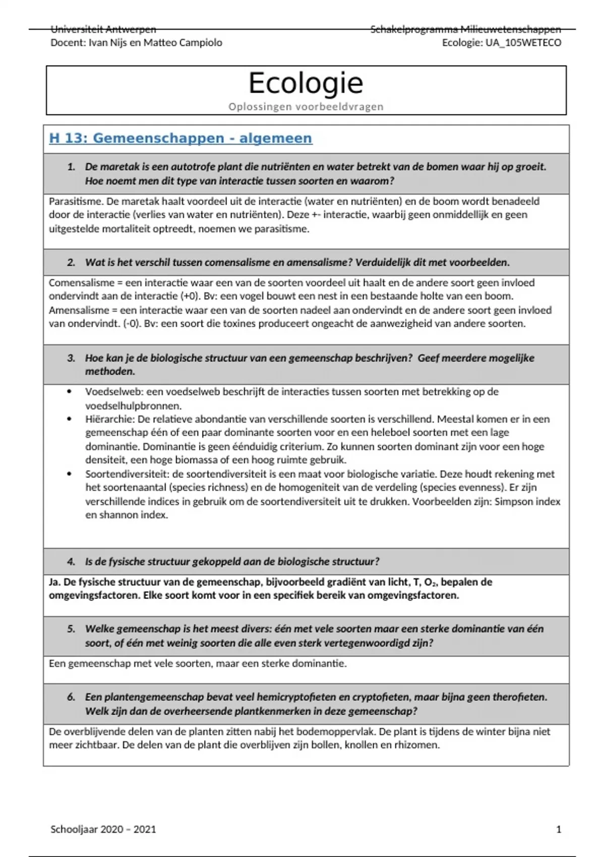 ,Oplossingen voorbeeldvragen Ecologie