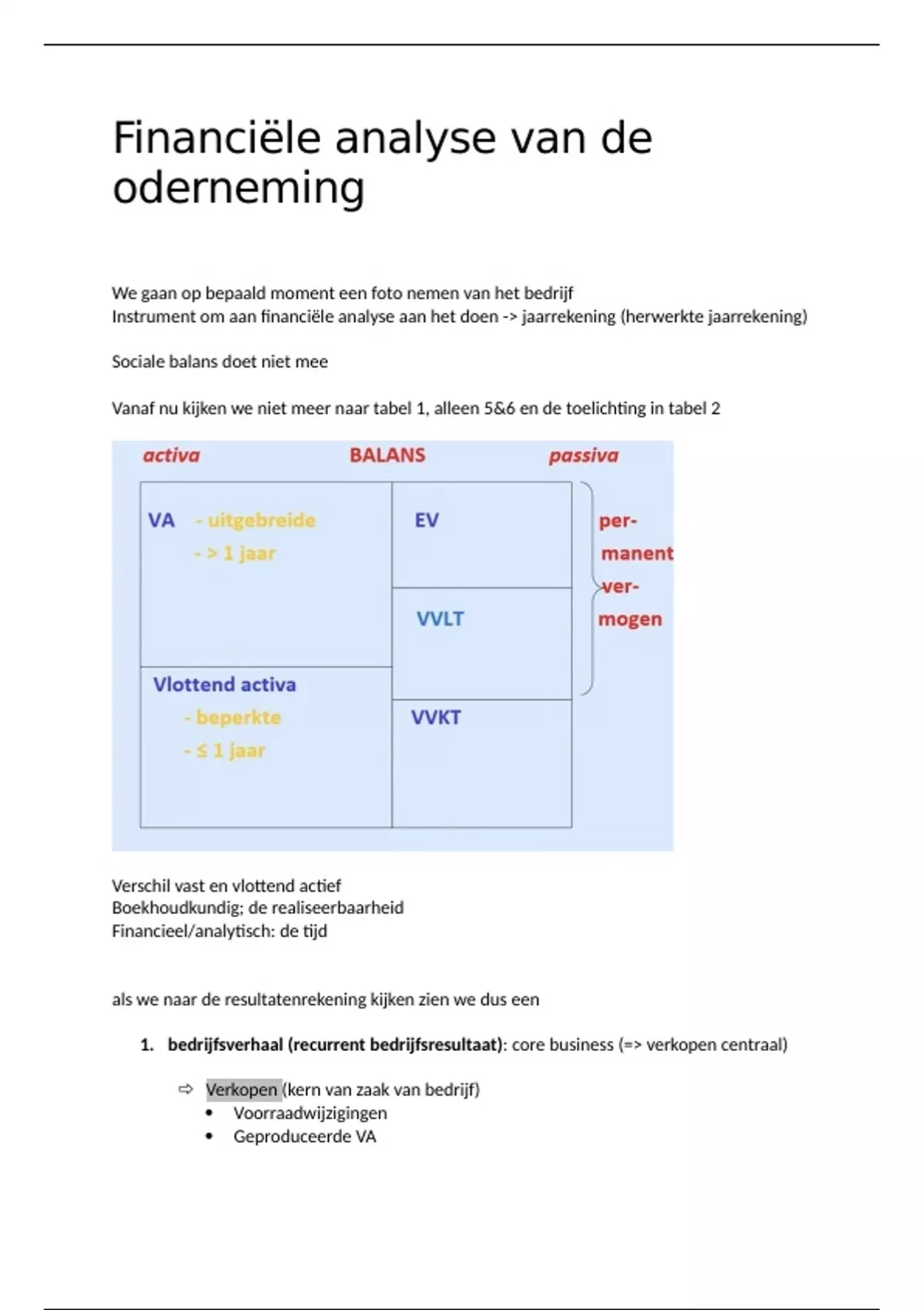 1. bedrijfsverhaal (recurrent bedrijfsresultaat): core business (=> verkopen centraal)