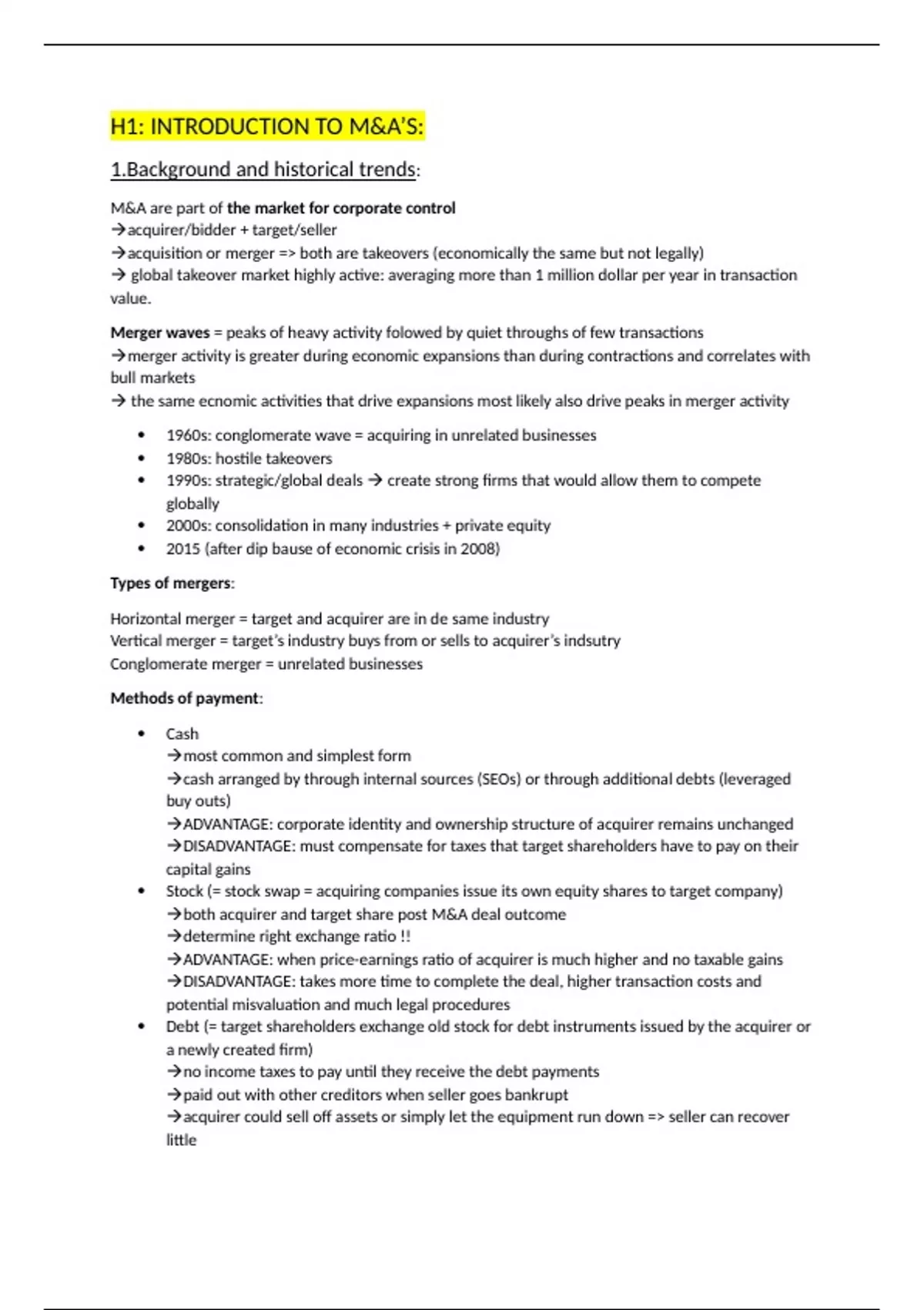 H1: INTRODUCTION TO M&A’S: