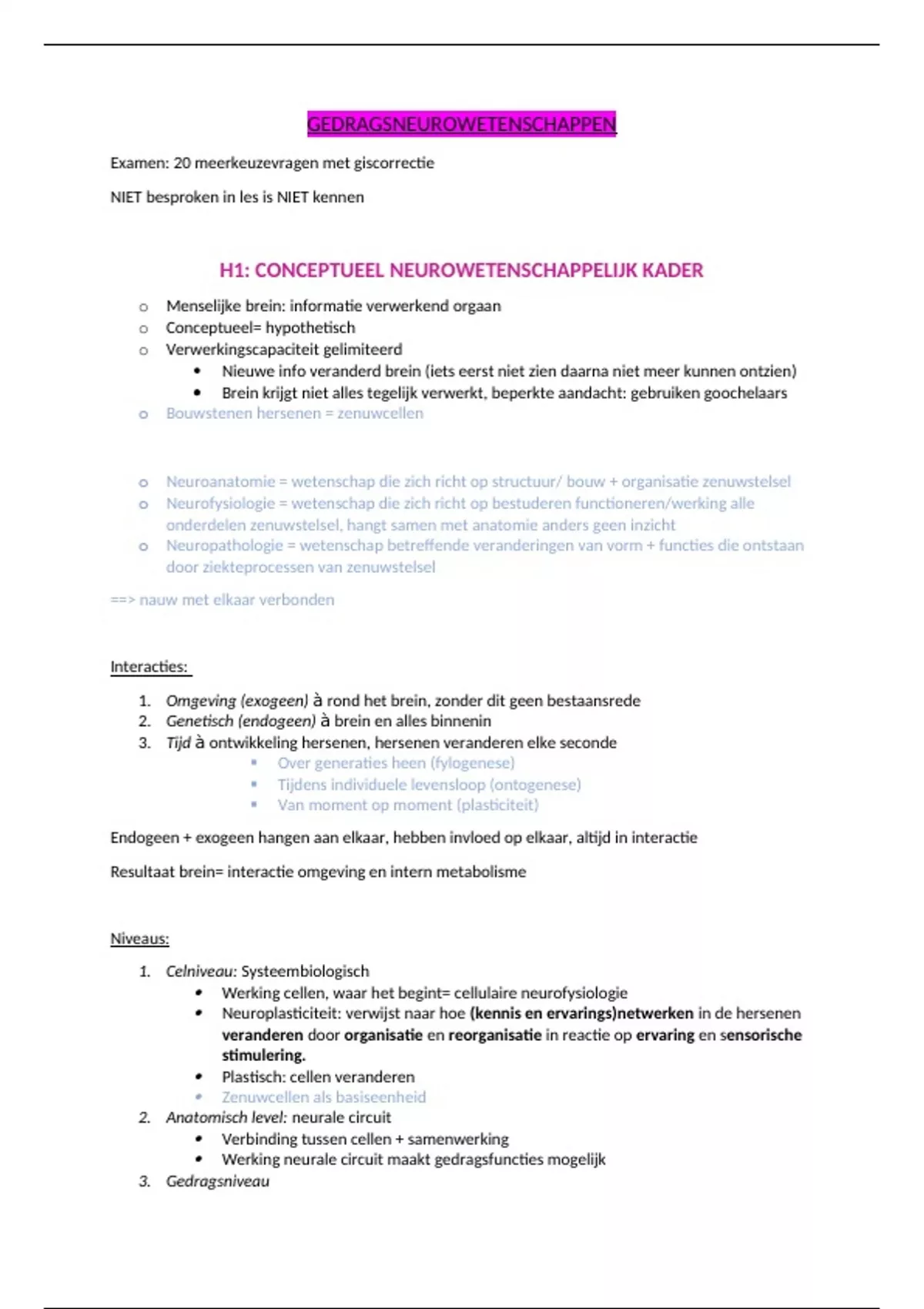 H1: CONCEPTUEEL NEUROWETENSCHAPPELIJK KADER