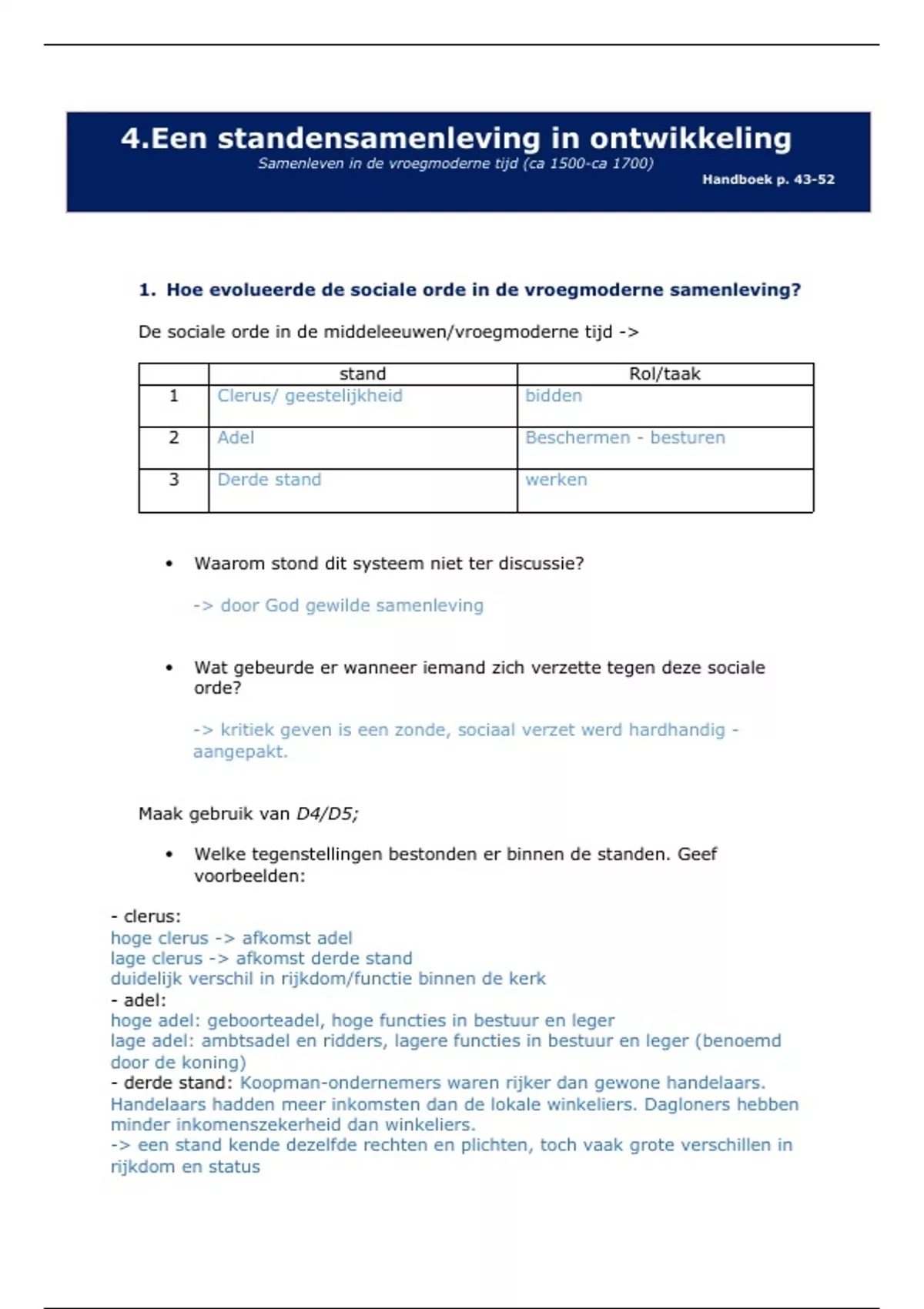  Welke tegenstellingen bestonden er binnen de standen. Geef