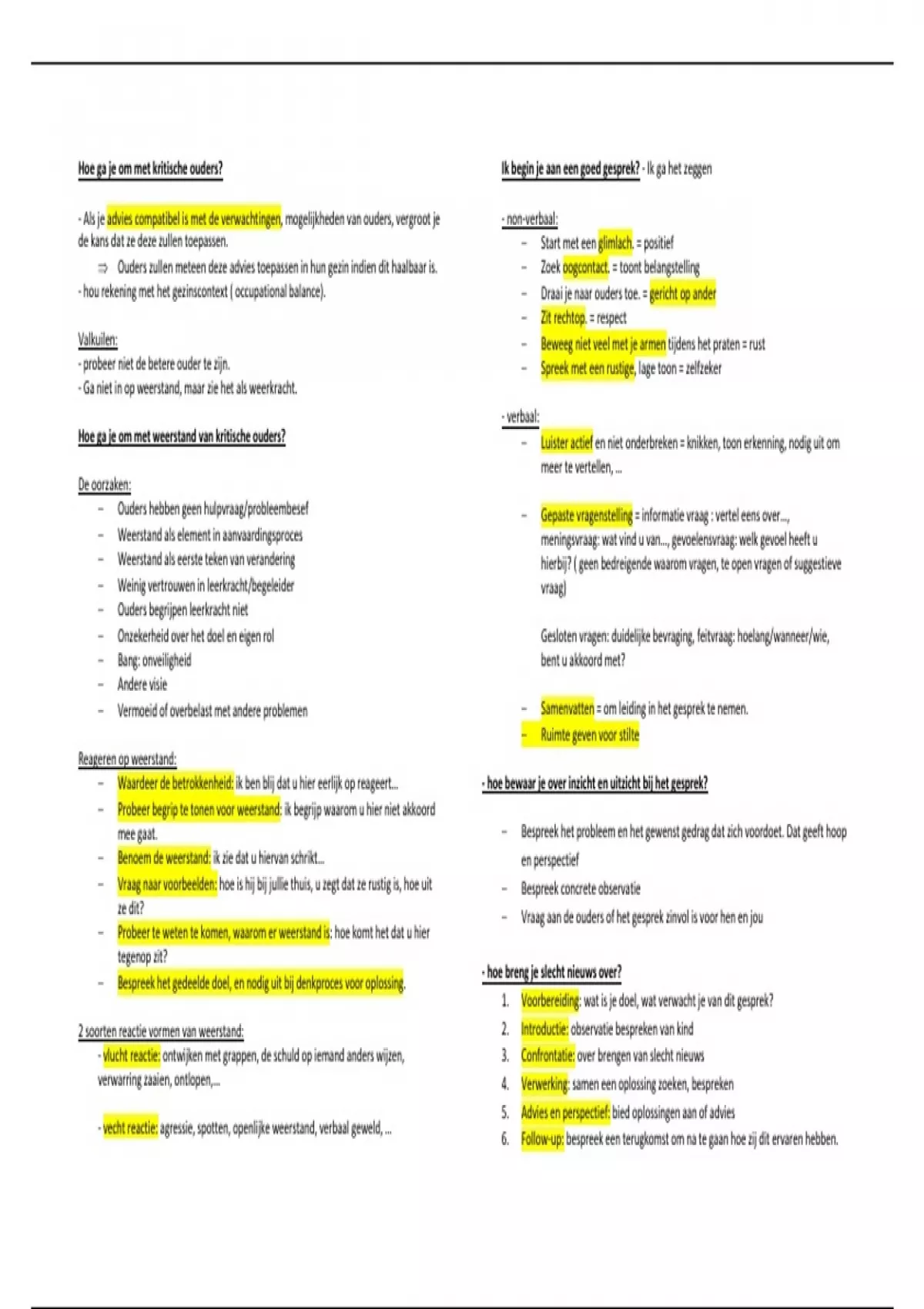 Hoe ga je om met weerstand van kritische ouders? - Luister actief en niet onderbreken = knikken, toon erkenning, nodig uit om