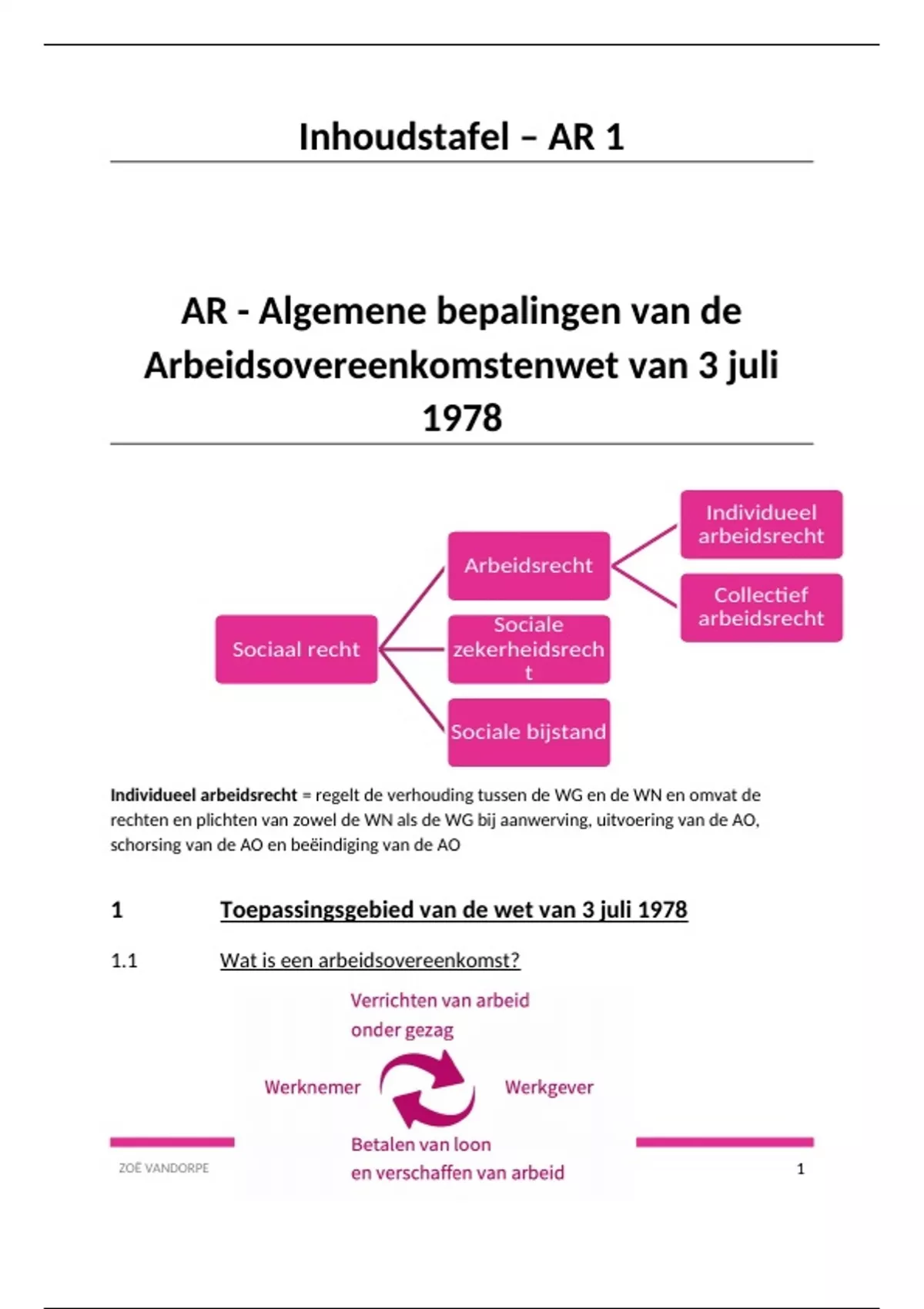 Individueel arbeidsrecht = regelt de verhouding tussen de WG en de WN en omvat de