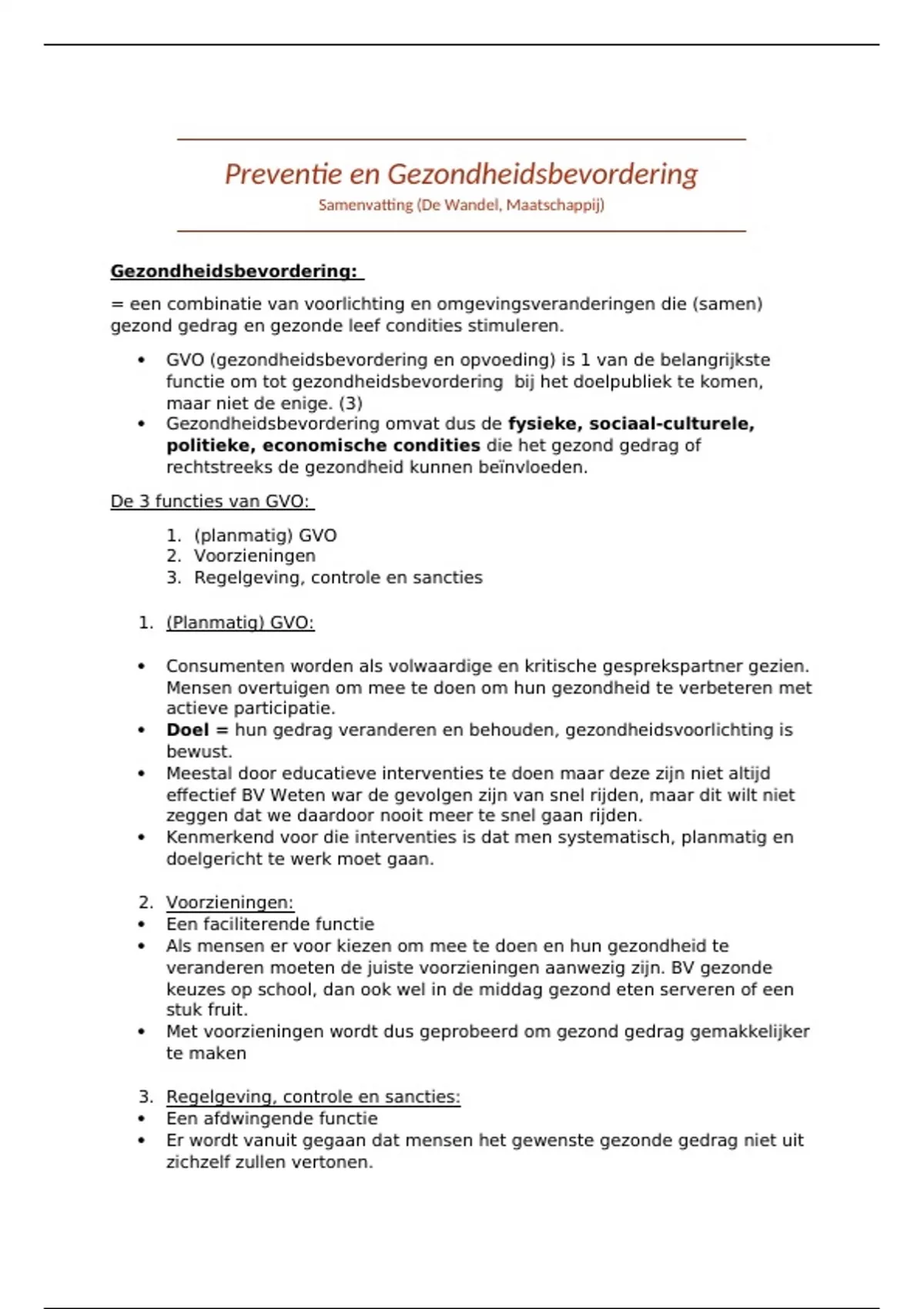  Gezondheidsbevordering omvat dus de fysieke, sociaal-culturele,