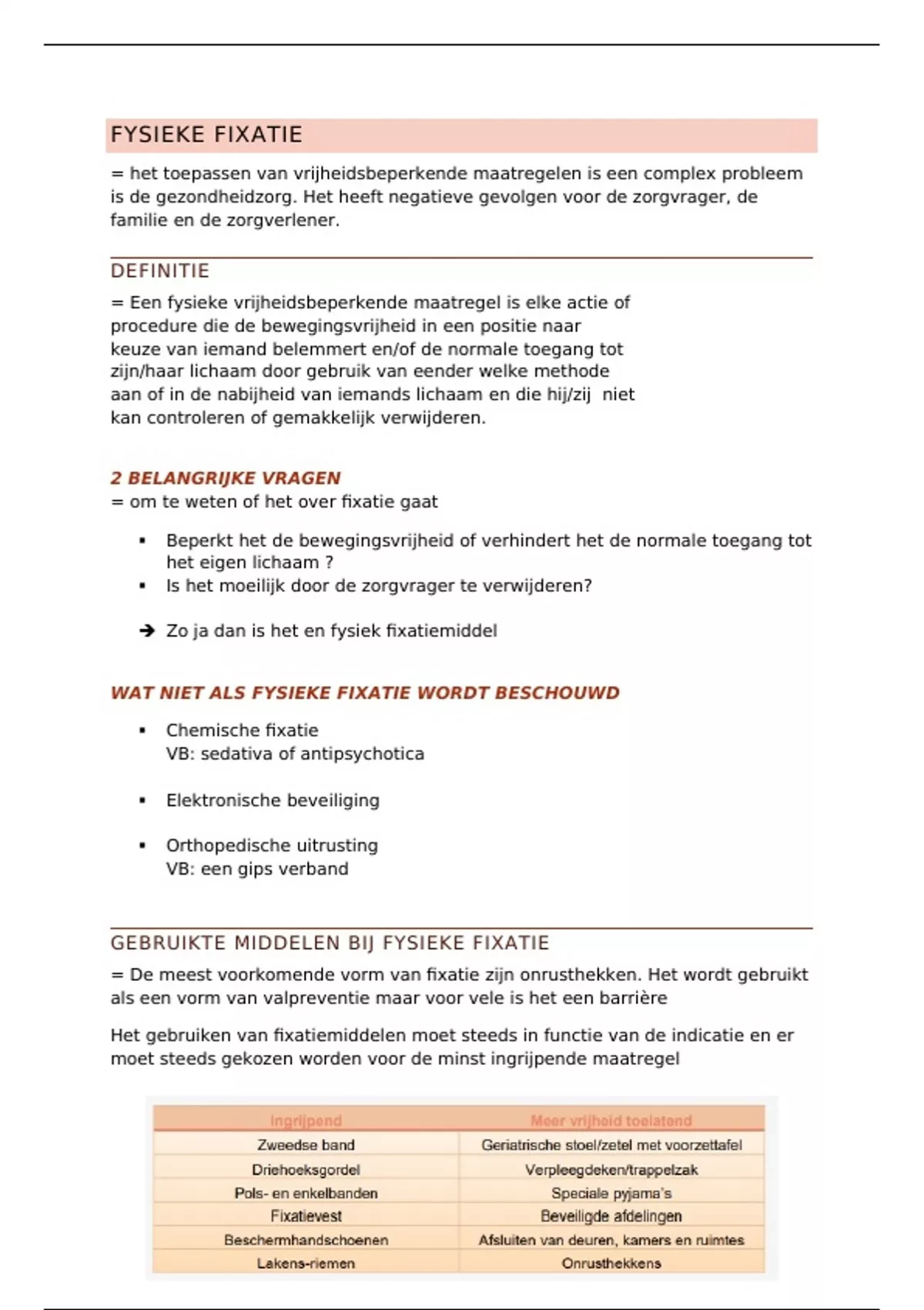 WAT NIET ALS FYSIEKE FIXATIE WORDT BESCHOUWD