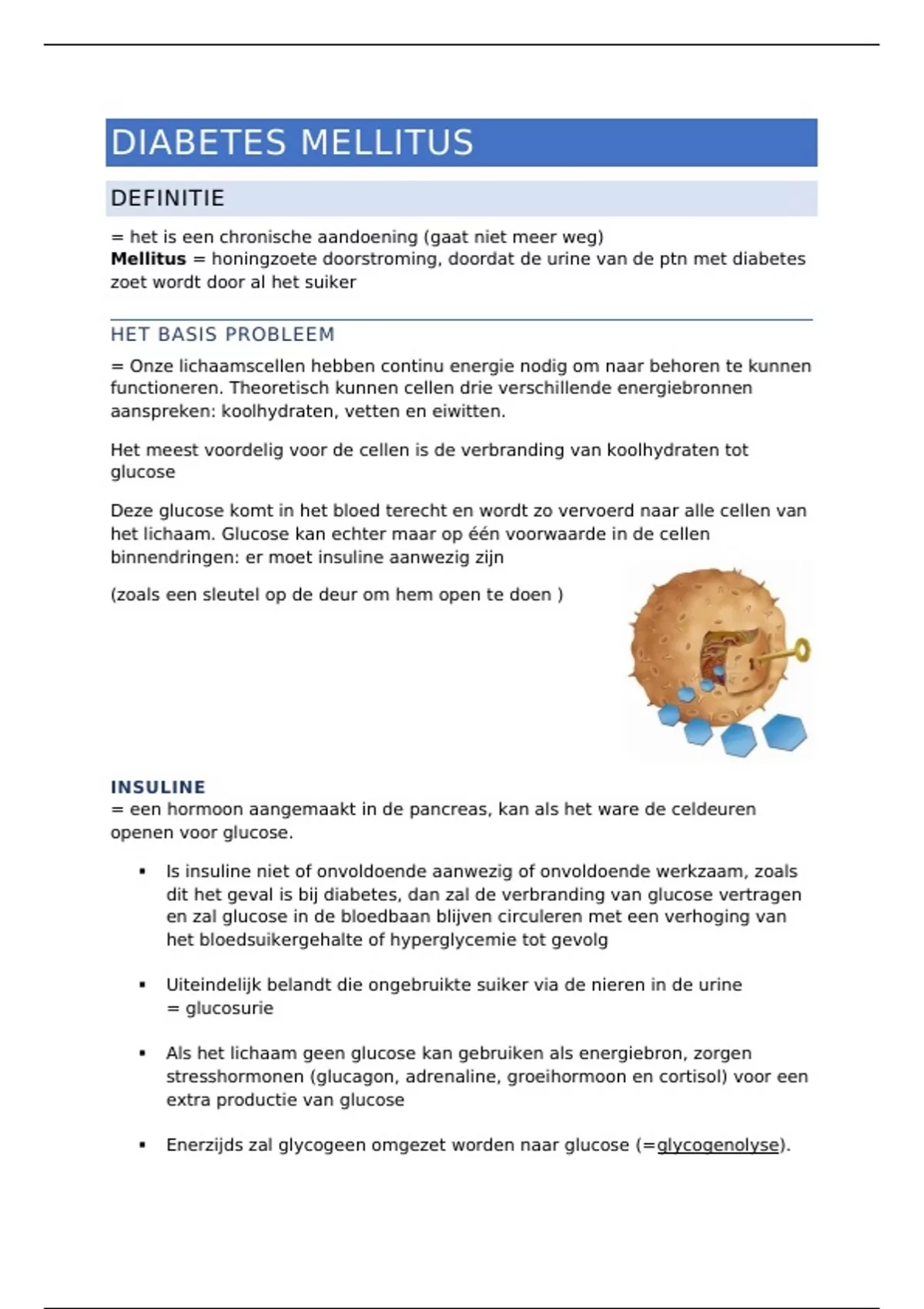 In deze samenvatting komen verschillende aspecten van onderzoeksmethoden aanbod. Bloedonderzoeken, MRI, PET scan,... Ook worden de soorten typen diabetes uitgebreid besproken.