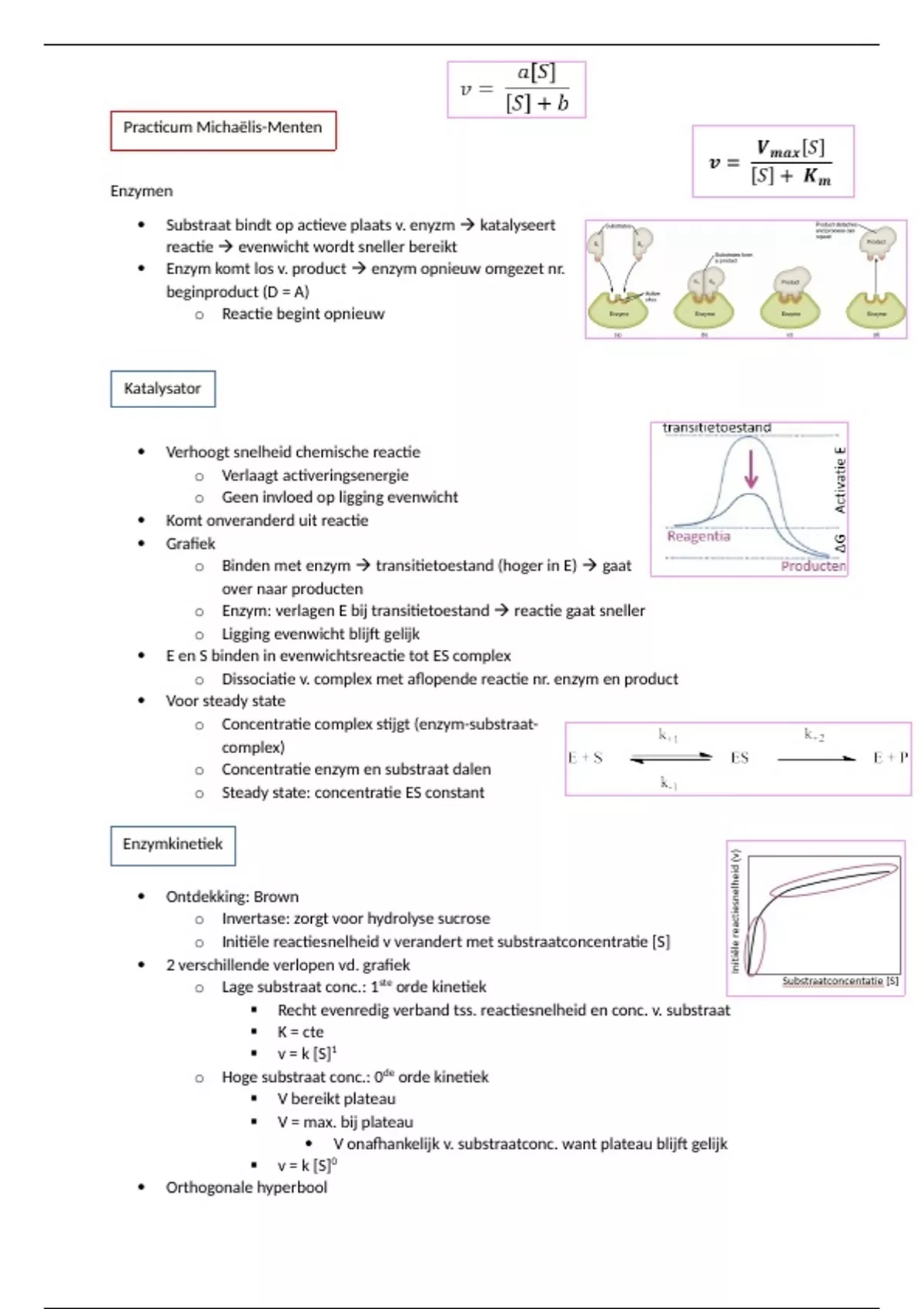 Samenvatting - Practicum: biotechnologie en biochemie, Michaelis Menten (J000496A)
