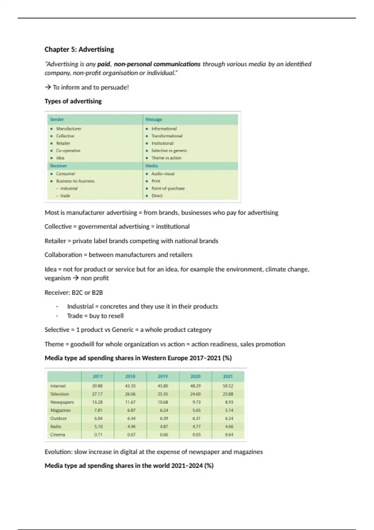 Chapter 5: advertising summary