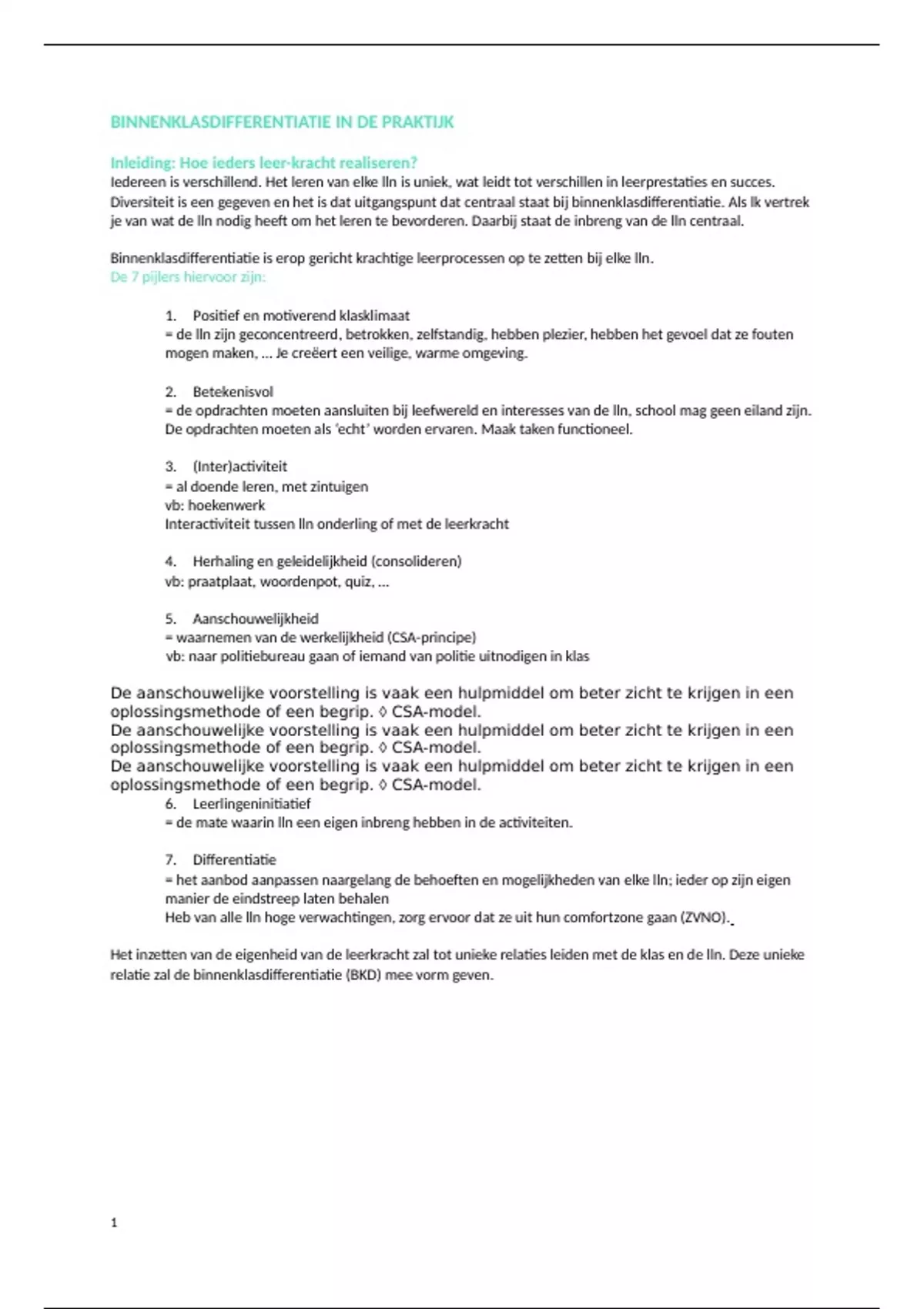 Binnenklasdifferentiatie in de praktijk - samenvatting