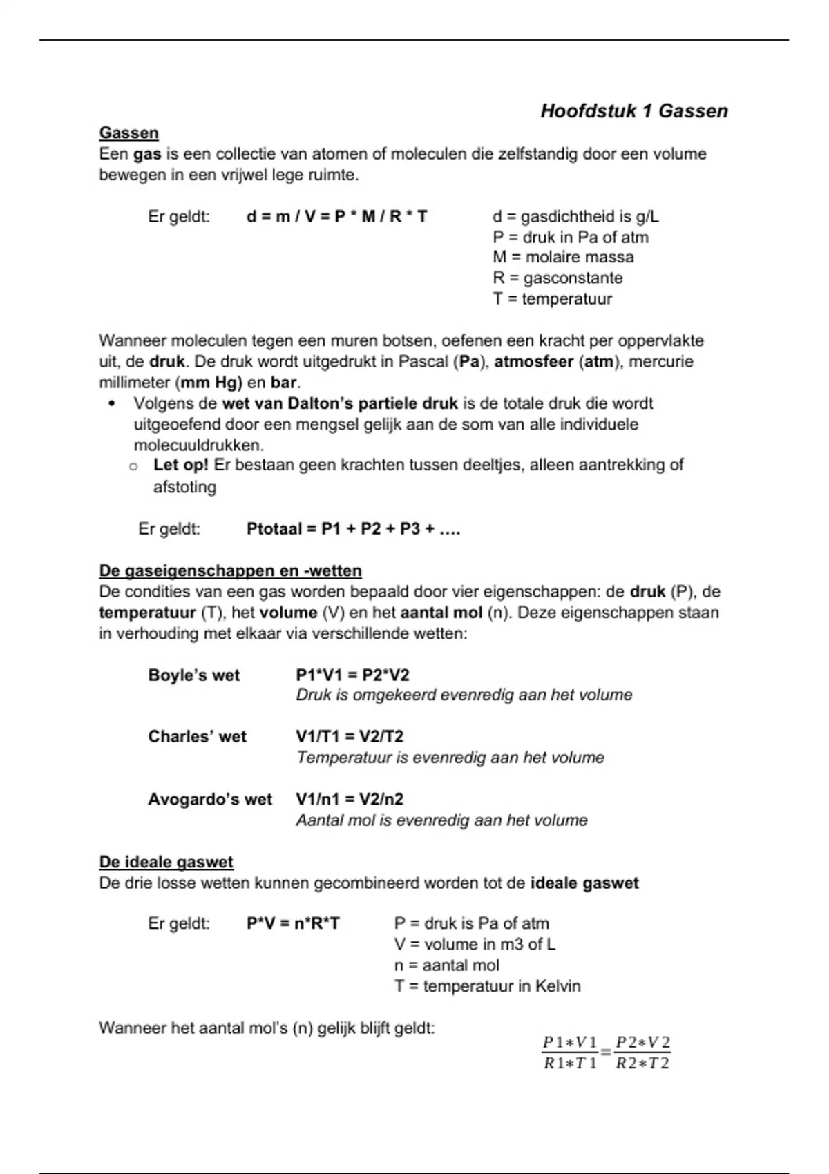 De gaseigenschappen en -wetten