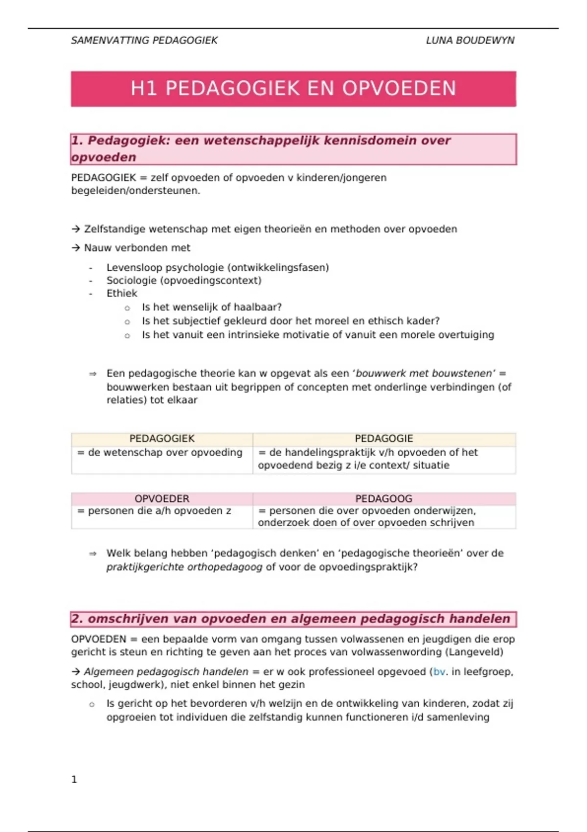 , SAMENVATTING PEDAGOGIEK LUNA BOUDEWYN