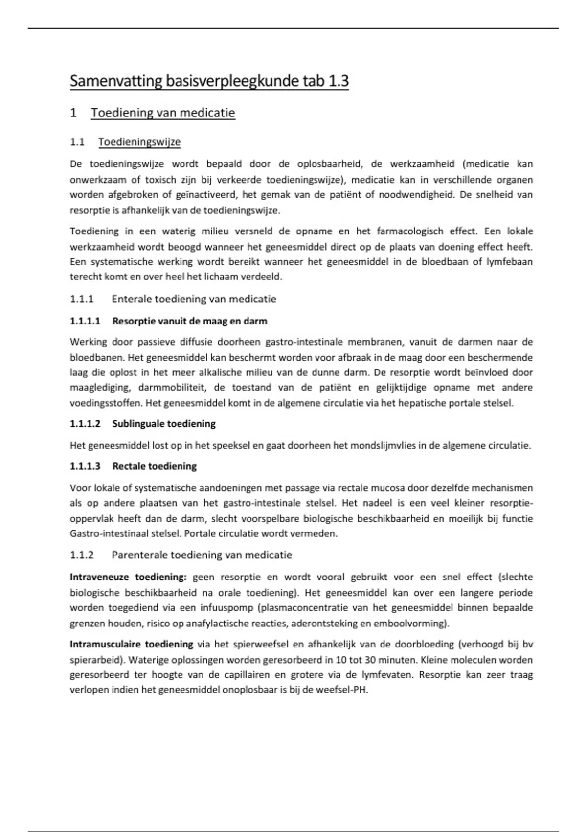 Samenvatting - Tab 1.3 Basisverpleegkunde 2
