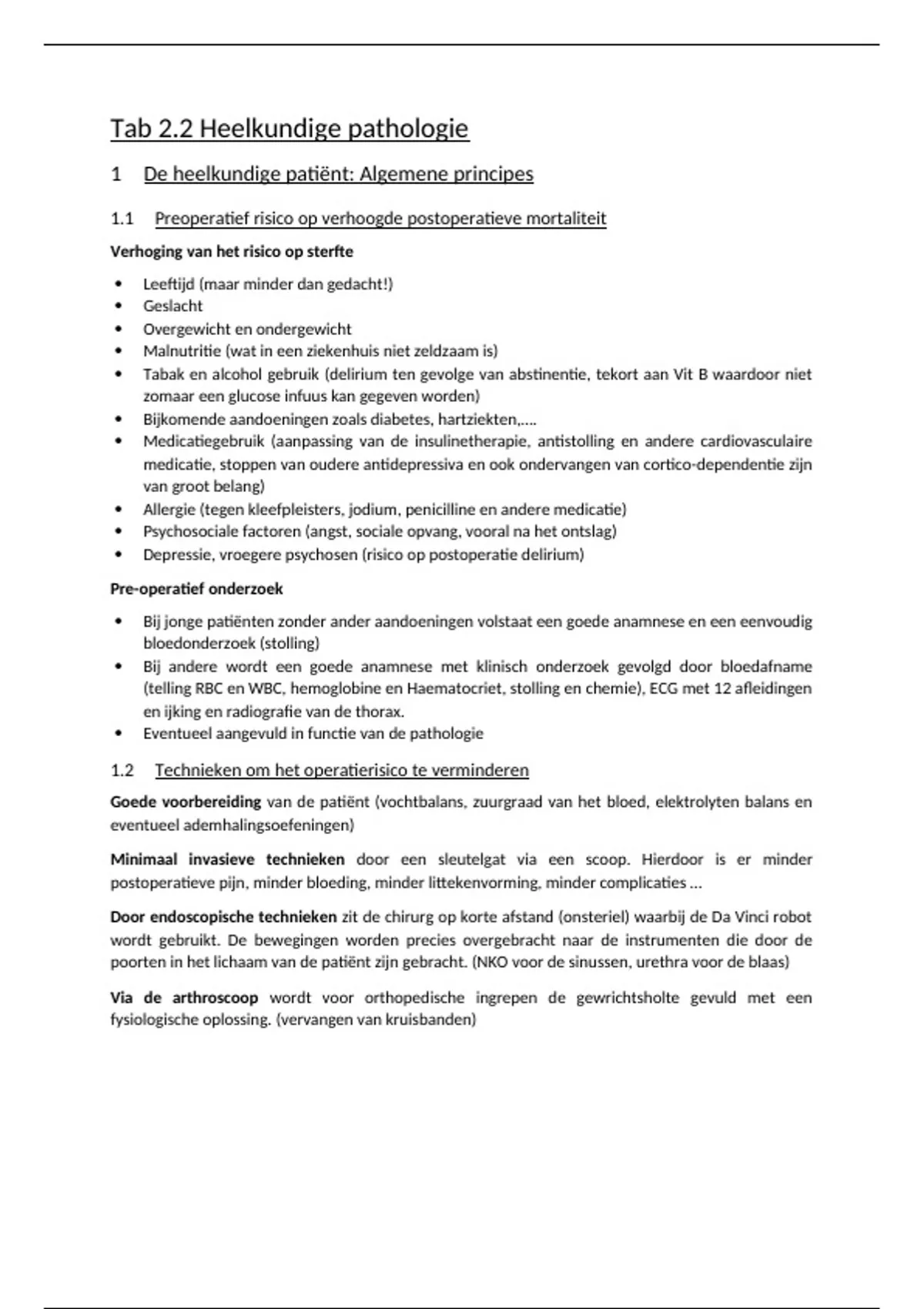 1.1 Preoperatief risico op verhoogde postoperatieve mortaliteit