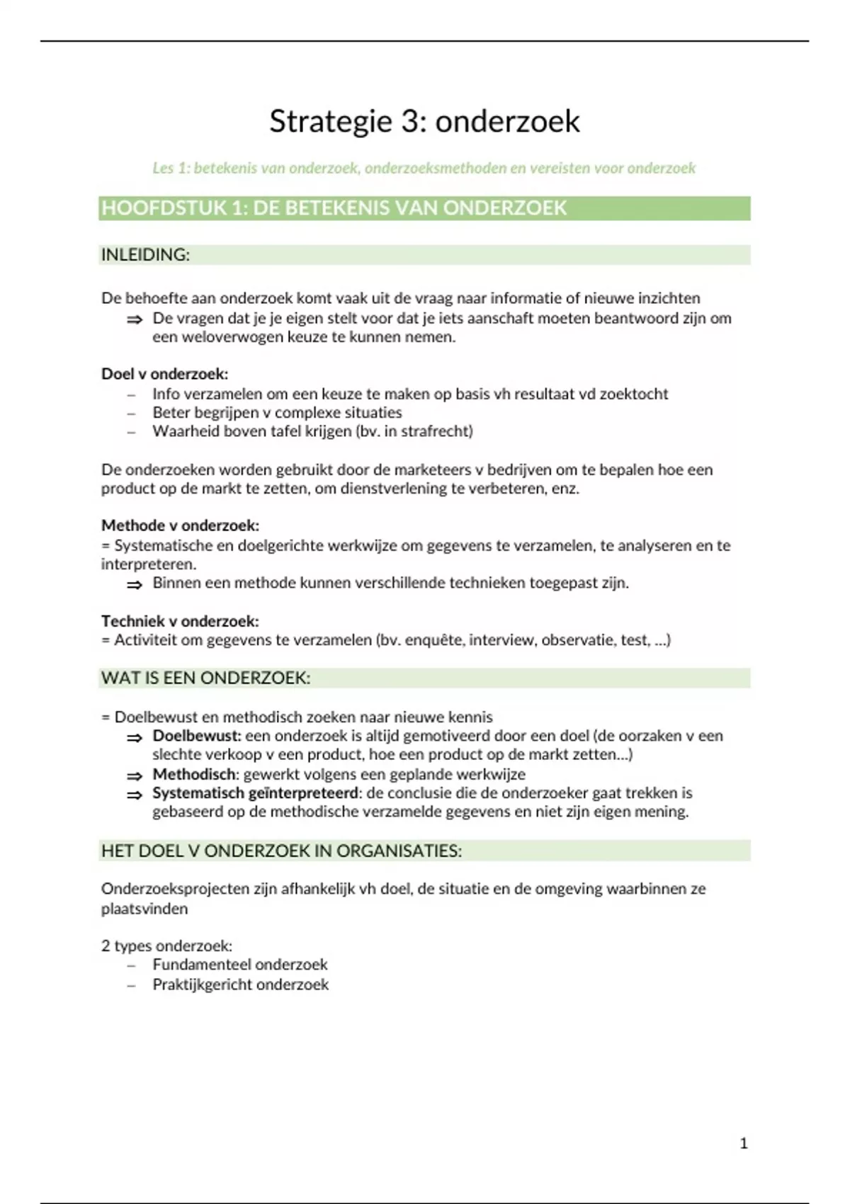 samenvatting strategie 3: Onderzoek en analyse