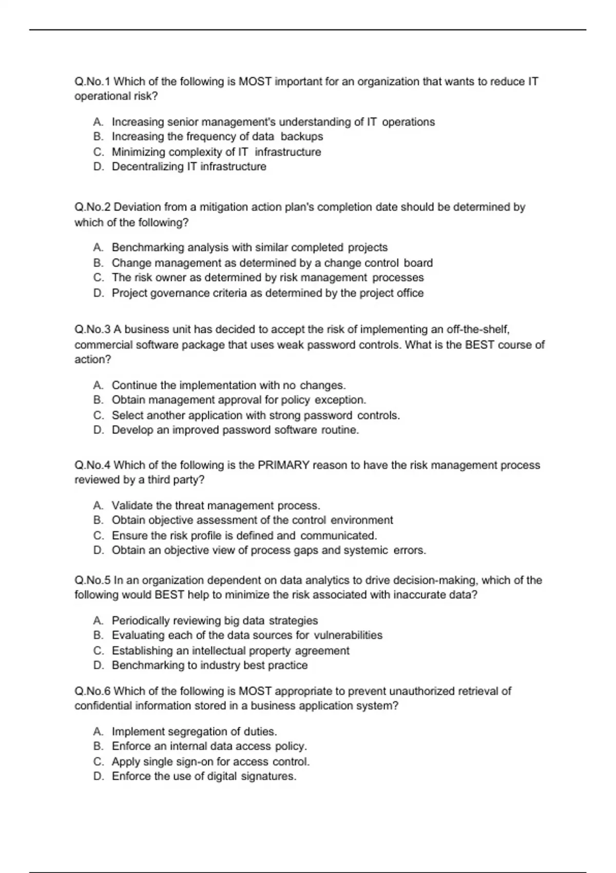 Q.No.3 A business unit has decided to accept the risk of implementing an off-the-shelf,