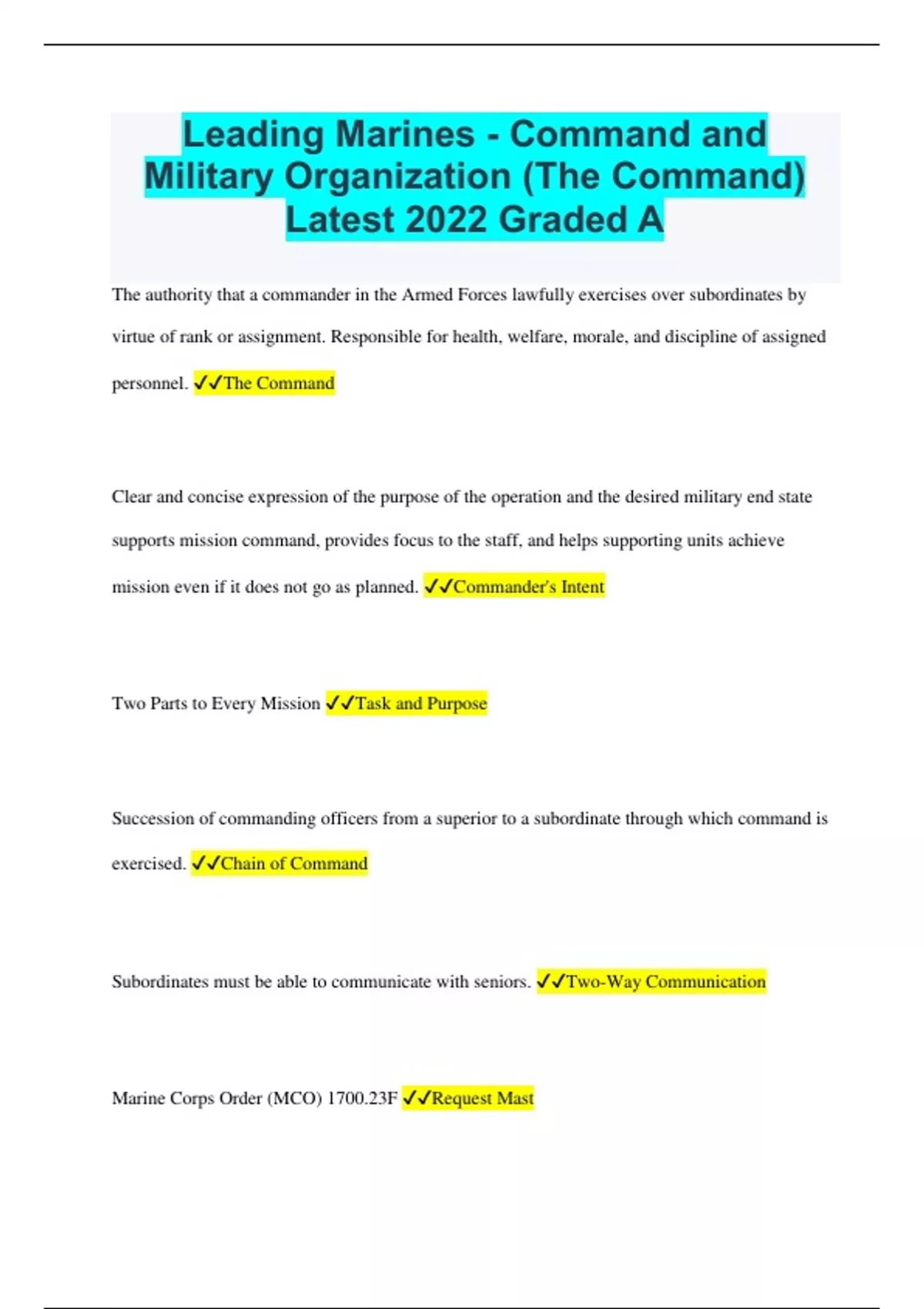 Leading Marines - Command and Military Organization (The Command) Latest 2022 Graded A