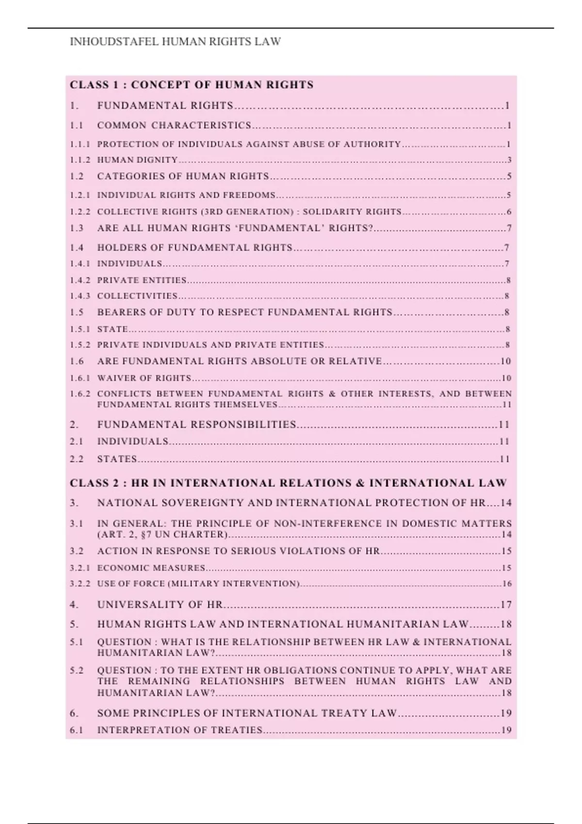 ,INHOUDSTAFEL HUMAN RIGHTS LAW