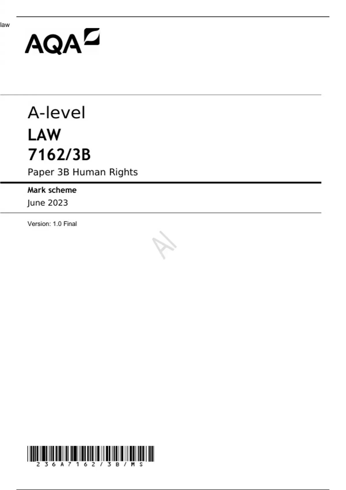 AQA A Level LAW Paper 3B Mark scheme June /3B