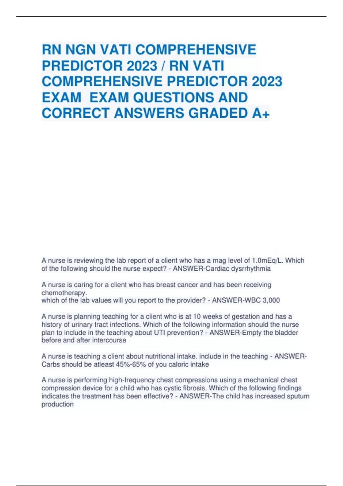 CORRECT ANSWERS GRADED A+