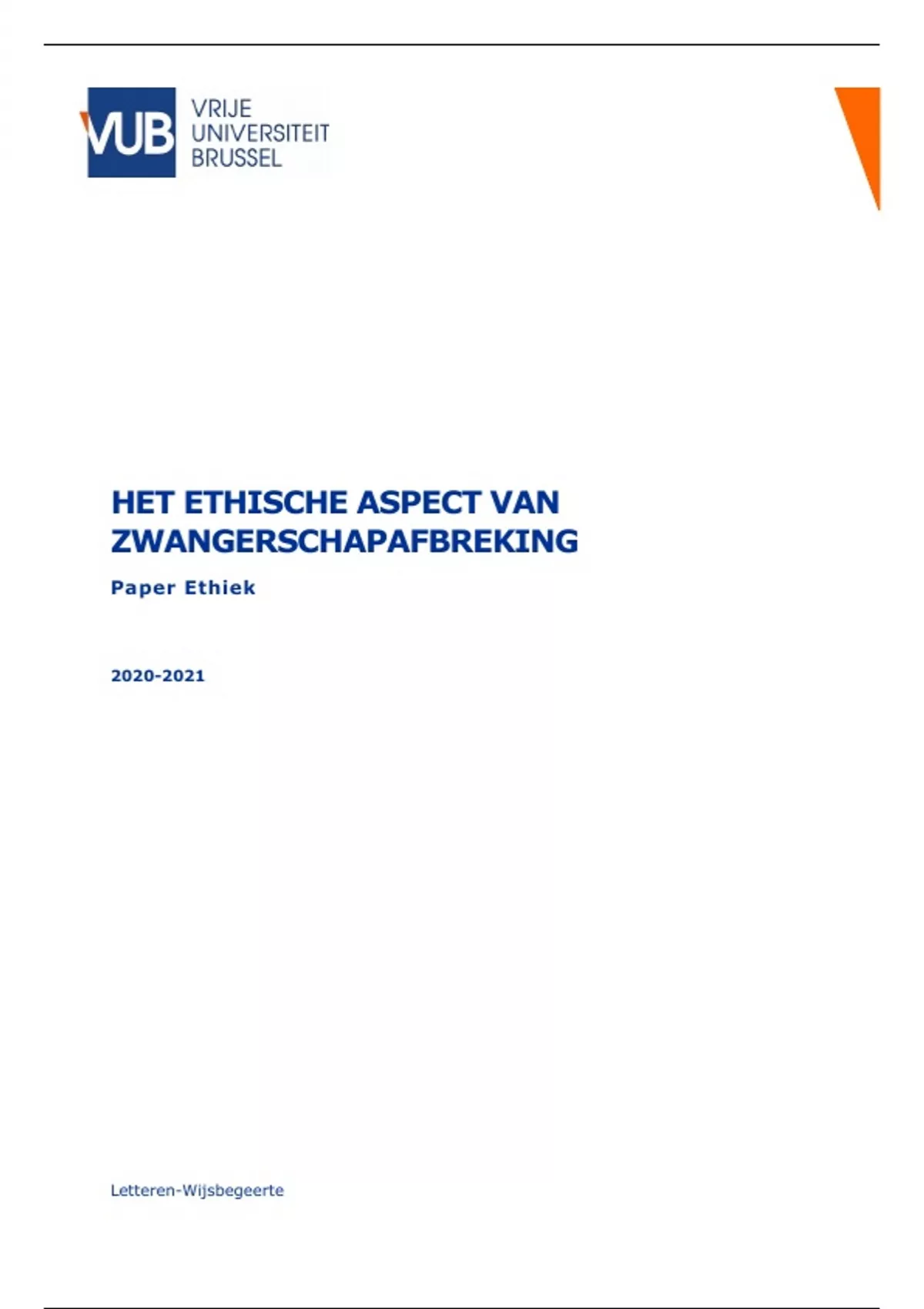 Dit document bevat mijn facultatieve examenpaper voor het vak ethiek met als onderwerp ethische aspecten rond zwangerschapsafbreking. Je kan deze paper gebruiken als inspiratie of voorbeeld. Ik behaalde voor dit vak 17/20