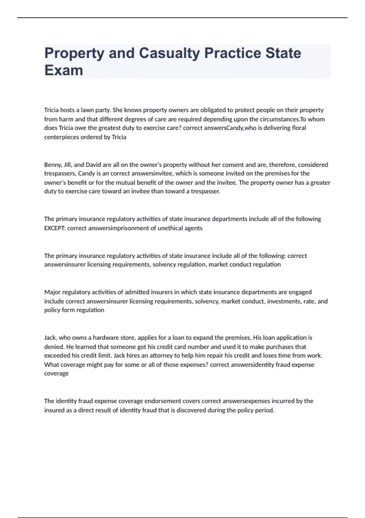property and casualty practice state exam