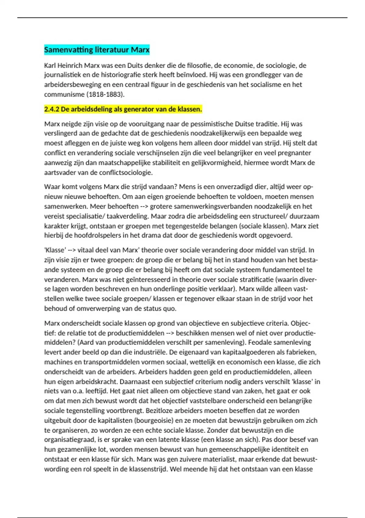 Samenvatting literatuur Marx