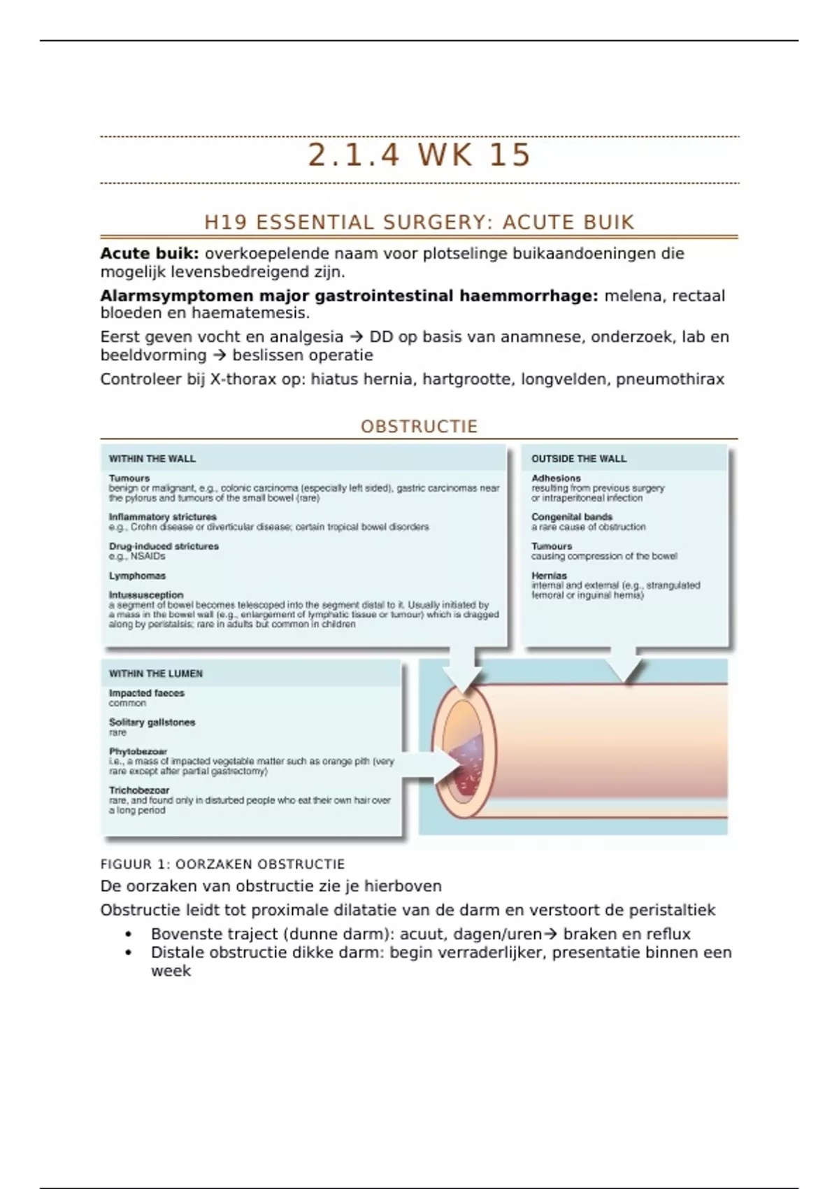 Obstructie leidt tot proximale dilatatie van de darm en verstoort de peristaltiek