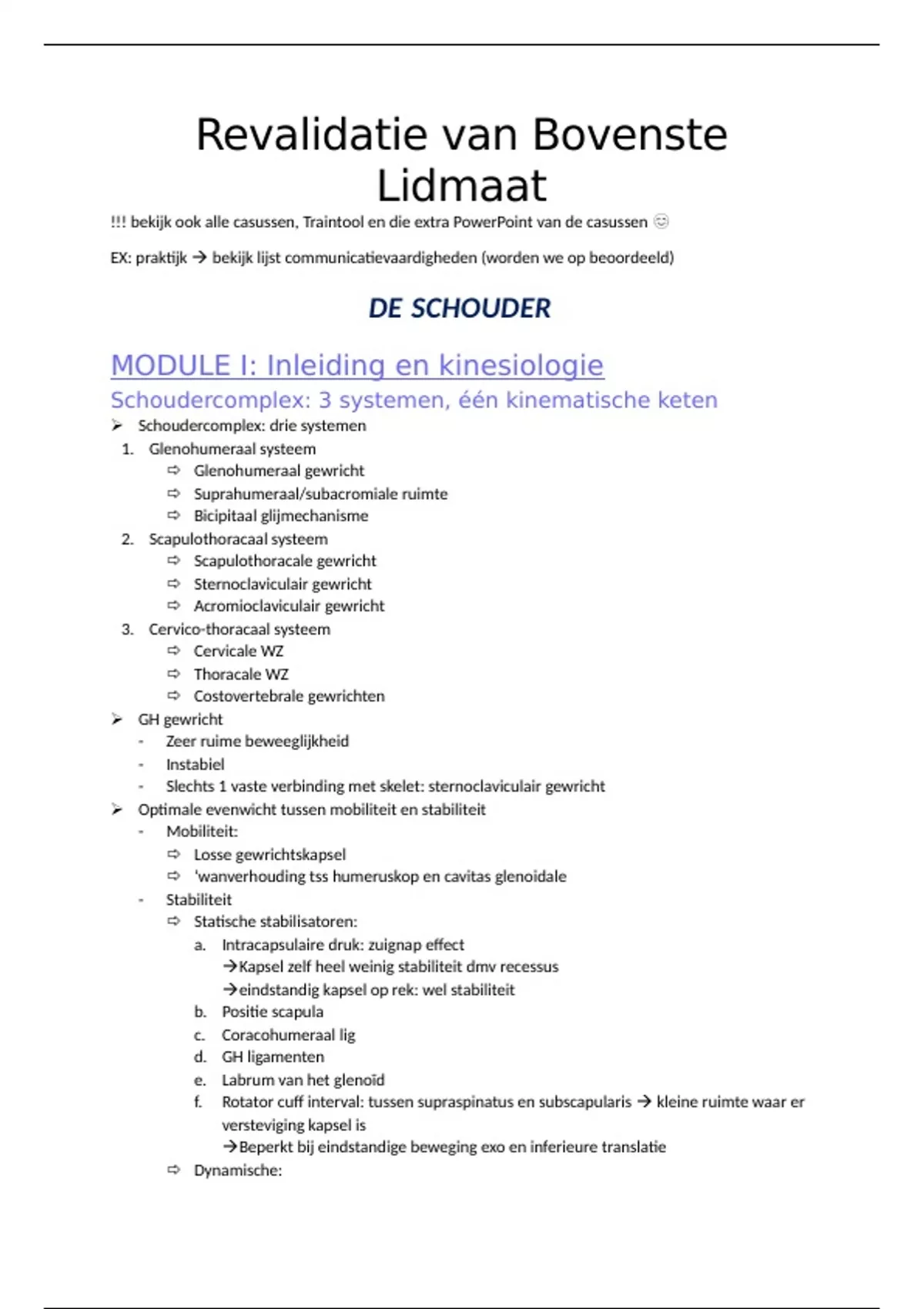 MODULE I: Inleiding en kinesiologie