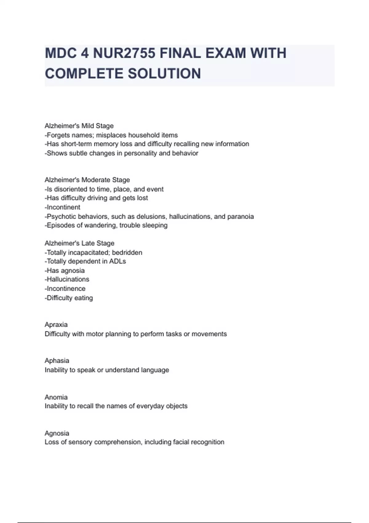 mdc 4 nur2755 final exam with complete solution