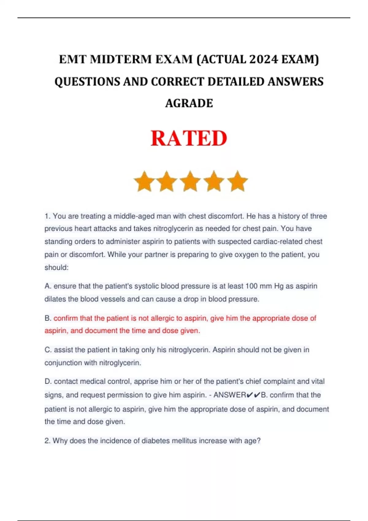 EMT MIDTERM EXAM (ACTUAL 2024 EXAM) QUESTIONS AND CORRECT DETAILED ANSWERS AGRADE