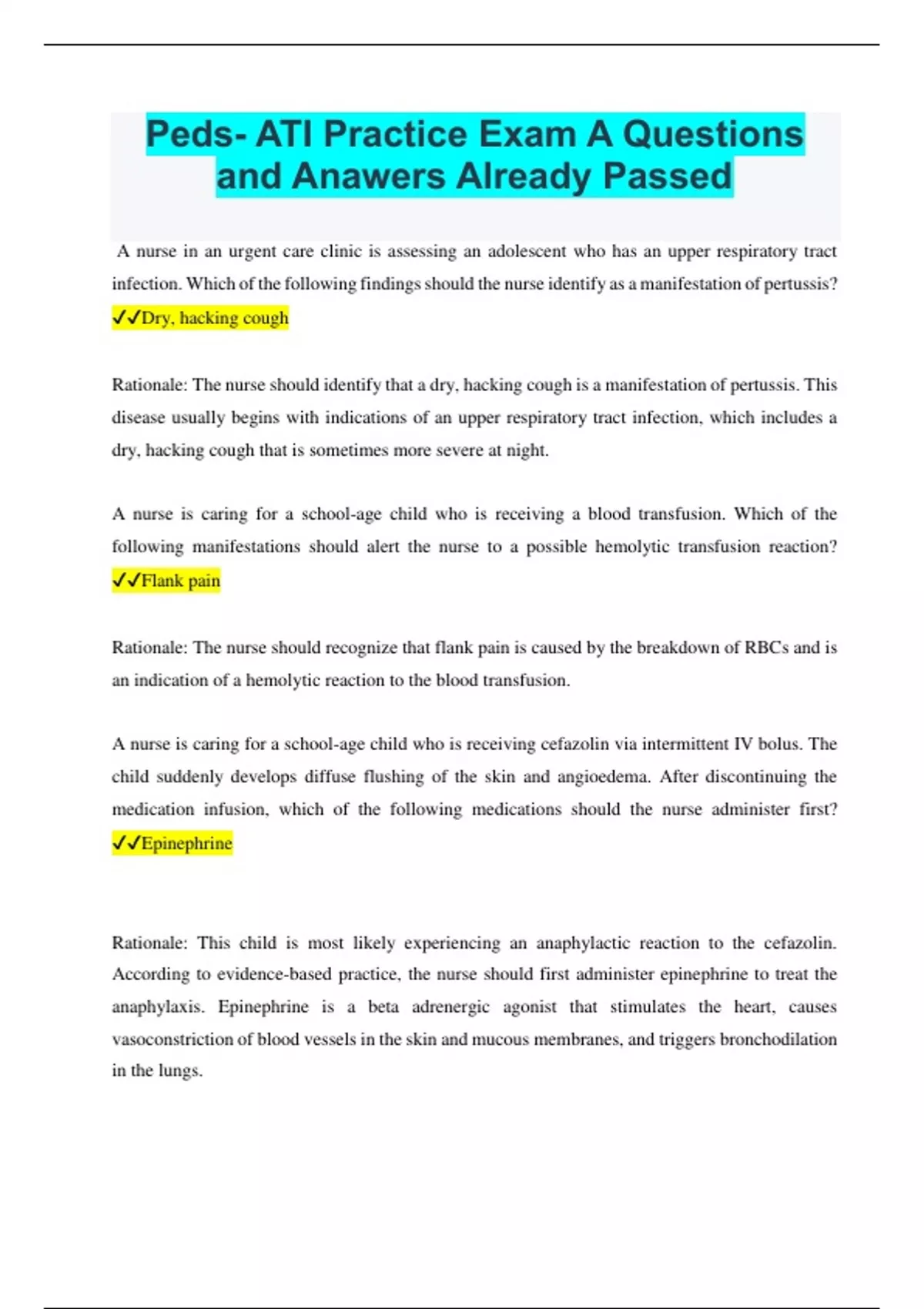 Peds- ATI Practice Exam A Questions and Anawers Already Passed