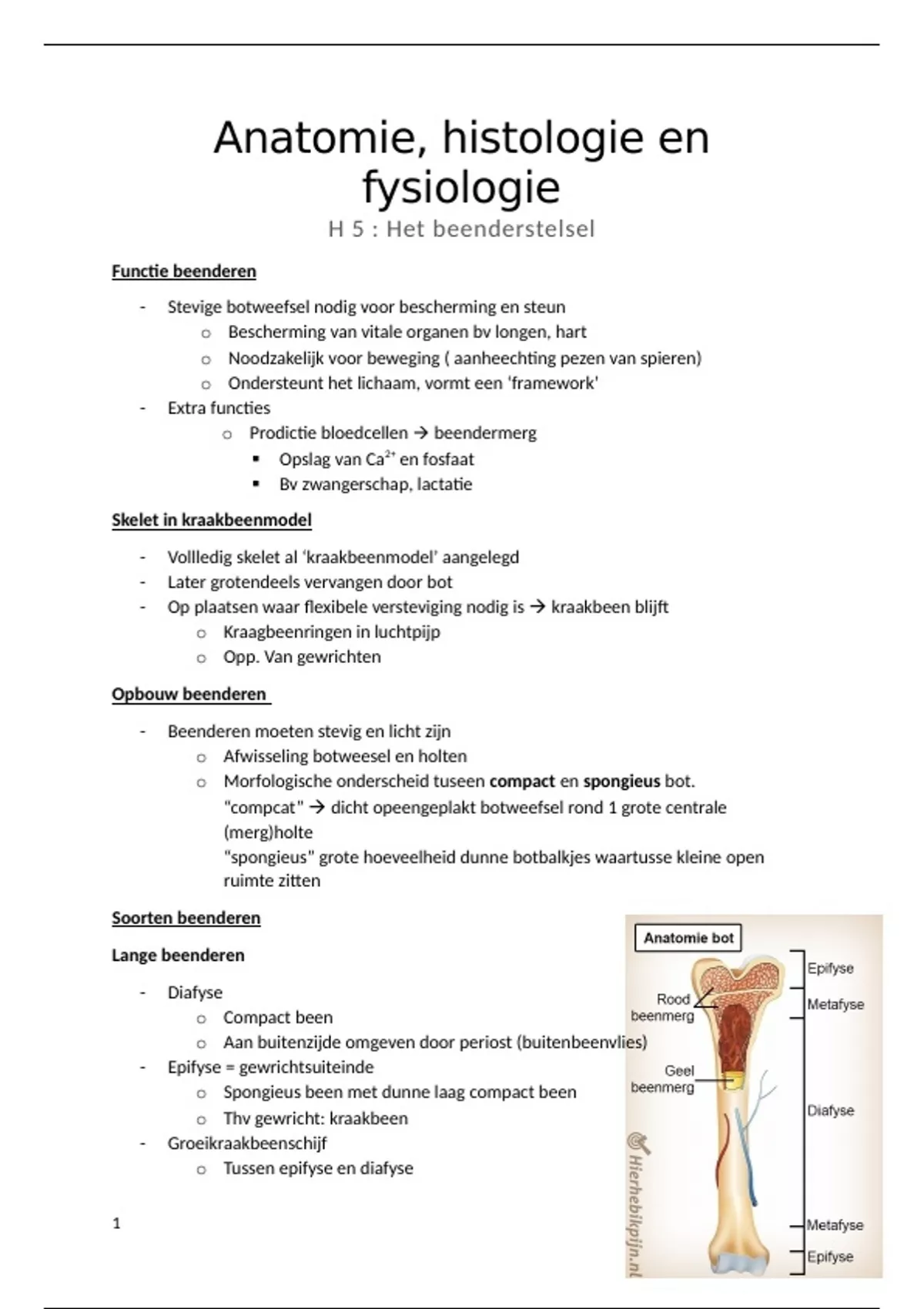 o Morfologische onderscheid tuseen compact en spongieus bot.
