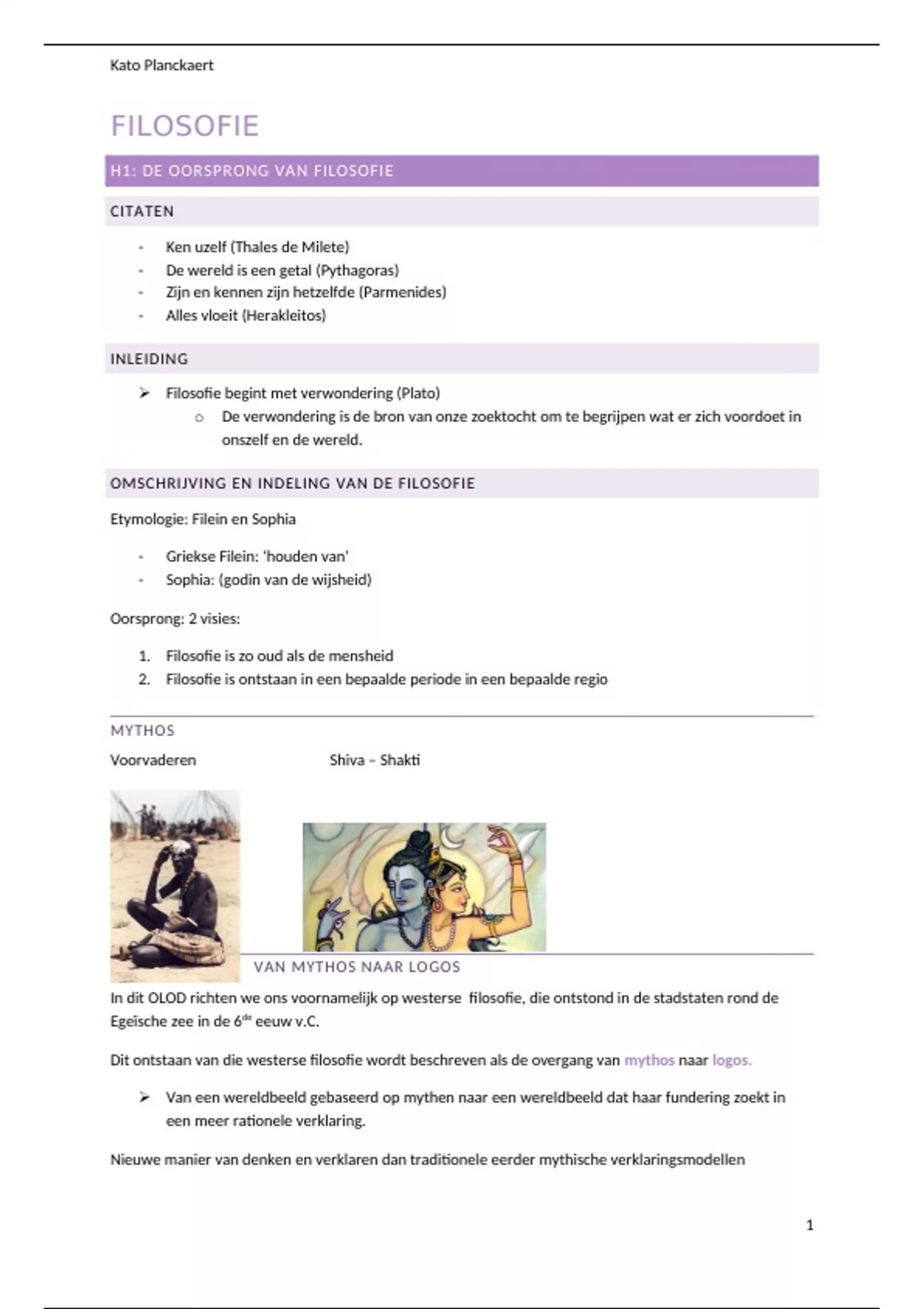 H1: DE OORSPRONG VAN FILOSOFIE