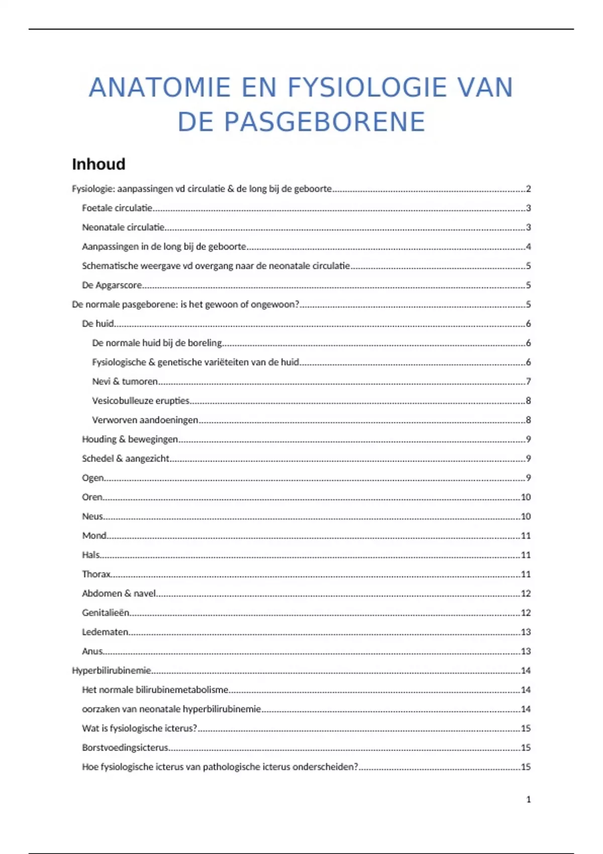 Fysiologie: aanpassingen vd circulatie & de long bij de geboorte............................................................................2