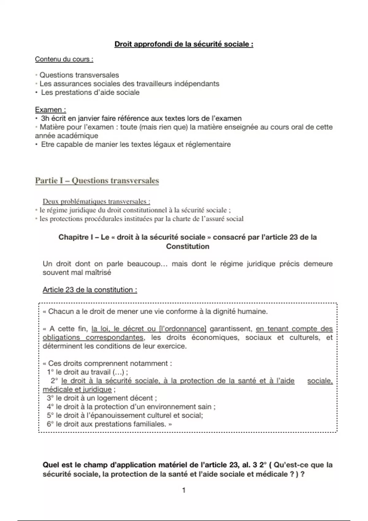 Chapitre I – Le « droit à la sécurité sociale » consacré par l’article 23 de la
